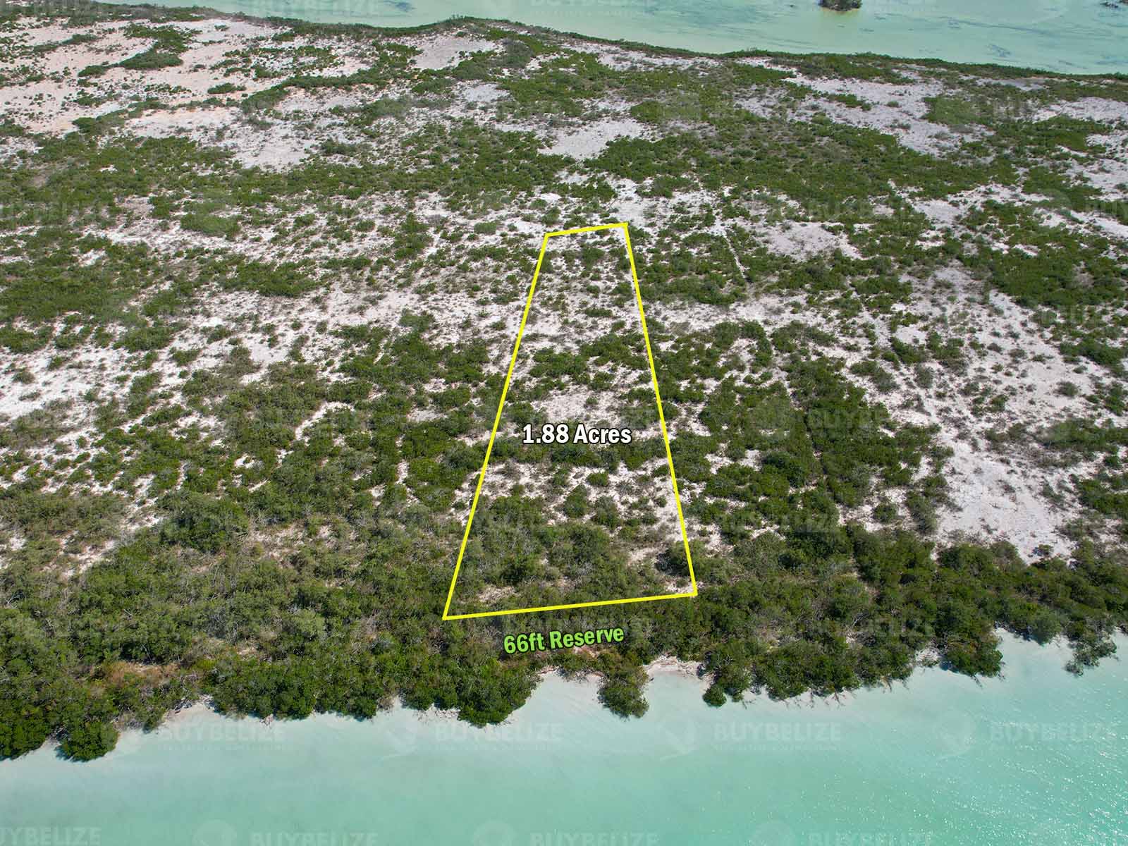 This property consists of 1.88 Acres of land. This property is of irregular shape and has 173 ft of seafront and goes 666 ft in depth. Behind this property is a 40 ft road reserve coming from Sarteneja Village. This property has 83ft of that road reserve frontage and would only be about 1.8 Miles away from Sarteneja Village once the road is developed. Currently the property is only accessible by boat and would be only a 10-15 minute boat ride from Sarteneja Village to the property.