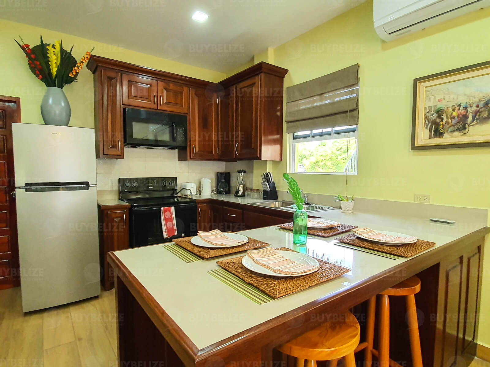 Buy Belize Management Ltd. proudly presents a newly built fully furnished apartment for rent, located in the West Landivar Area of Belize City. This is a 2-bedroom 1-bathroom apartment with an open concept living space.