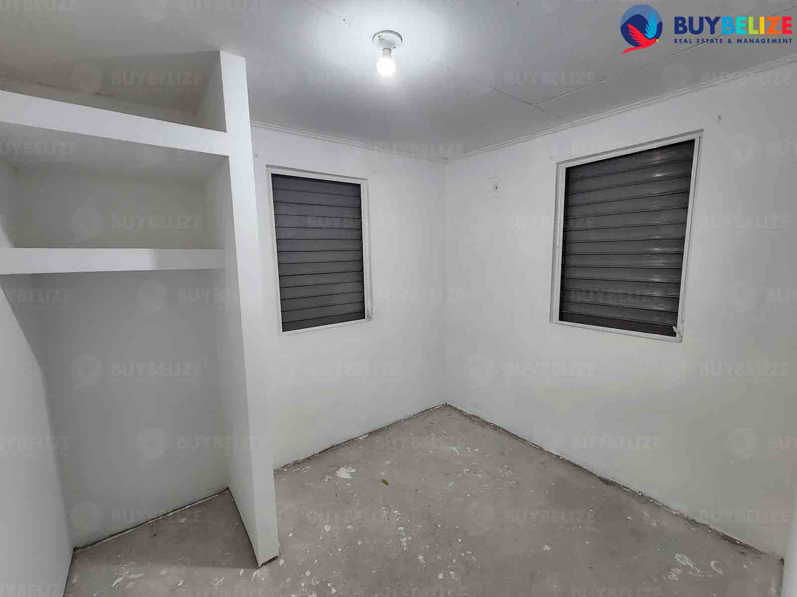Buy Belize is pleased to present a 2 Bed | 1 Bath unfurnished apartment for rent in Belize City. The master bedroom is made with it's own closet and has installed a ceiling fan.