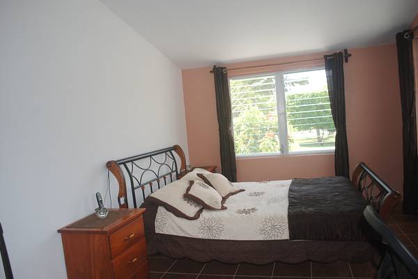 This 3rd floor apartment has been recently built and consist of 900 sq ft of space. The apartment consist of an open dining, kitchen and living room that is air conditioned. The living room has a couch that seats 3 person with center piece. The couch faces a 42 inch curve flat screen T.V with cable. The living room also has a bay window that can seat 2 other person. The dining area has a beautiful granite table with 3 chairs. The apartment has free wireless internet.
