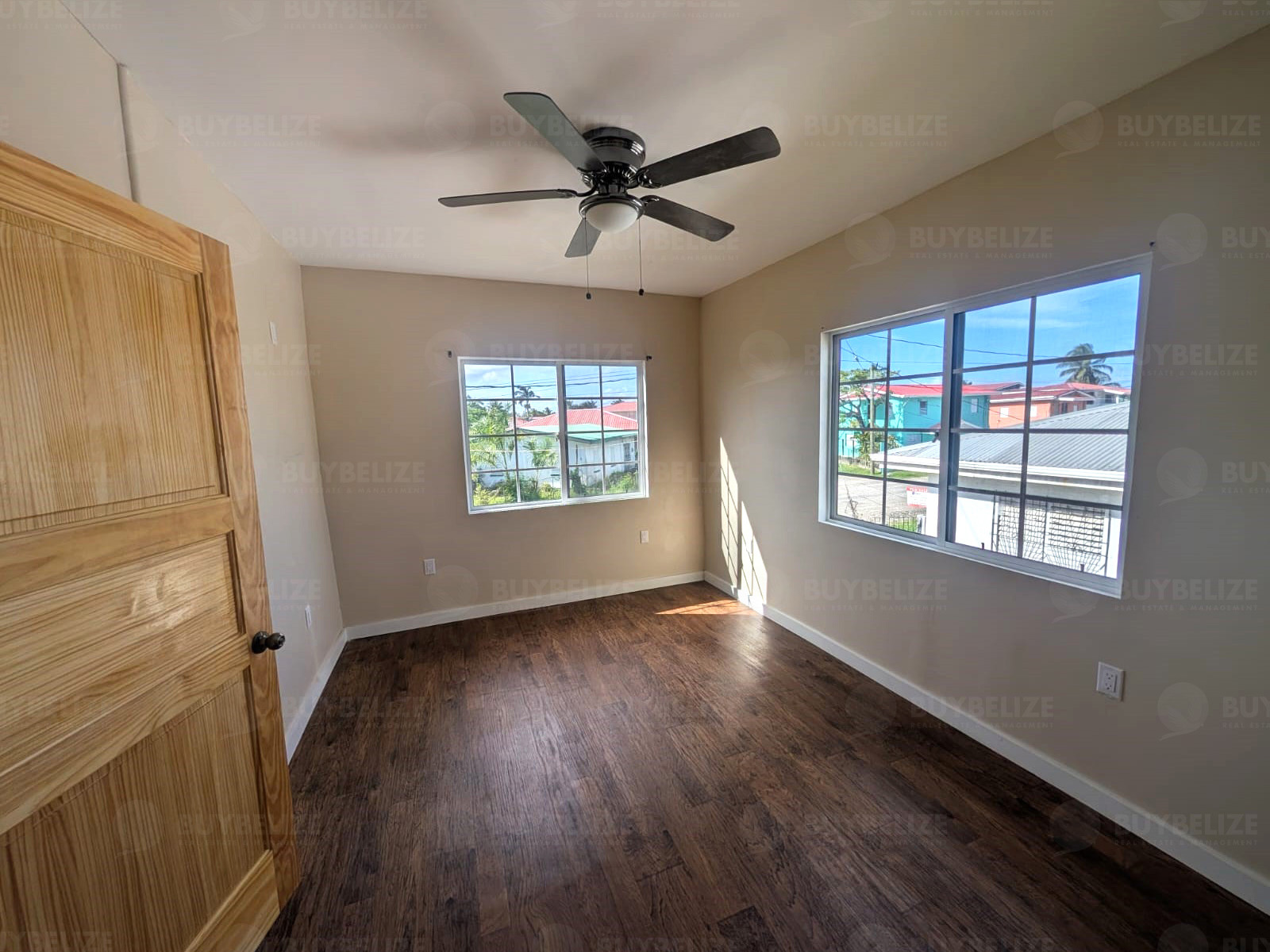Buy Belize exclusively presents this upper level apartment space situated in the desirable area, King's Park. The apartment provides large amounts of open area space especially in the hallway which is equipped with an A/C. Side by side you find the two bedrooms with ample space along with shared bathrooms. The apartment is minutes drive away from: