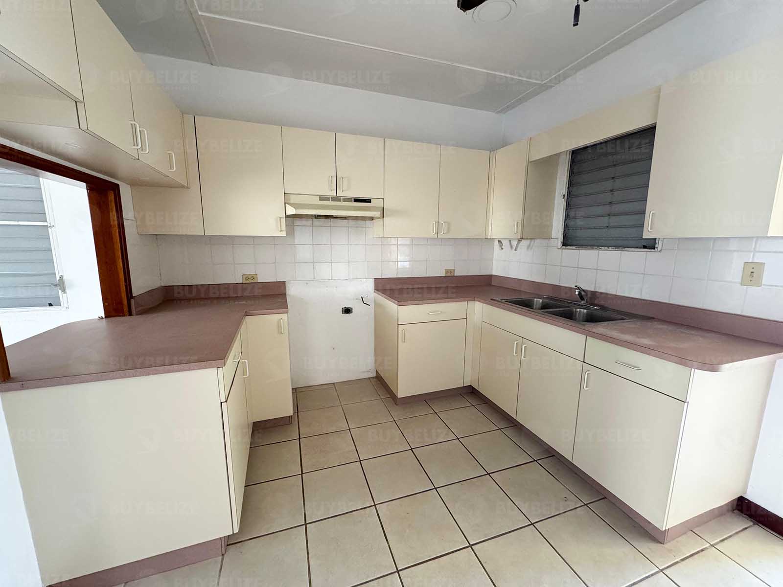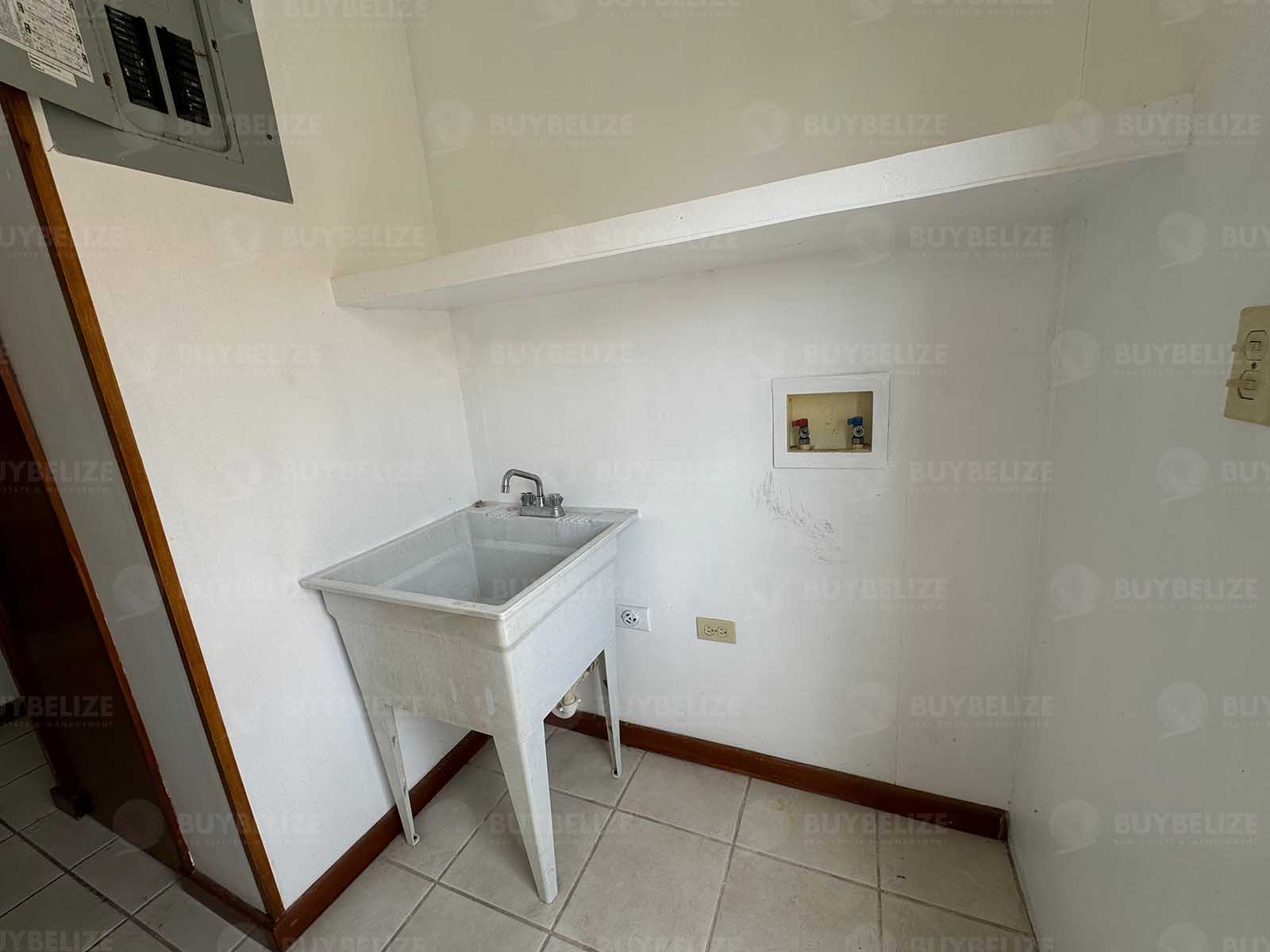 Buy Belize Real Estate proudly presents a semi furnished apartment in the safe neighbourhood of Buttonwood Bay in Belize City. This cosy apartment consists of 2 bedrooms, one bathroom, laundry room, and a very spacious living room and kitchen located on the upper flat of the apartment building. The property is fully fenced and has parking accommodation. The master bedroom has a walk- in closet with wooden shelves that may be used for storage. The laundry room has space for a washer and dryer. The kitchen is fully equipped with all necessary basic appliances. The rental is located near restaurants, schools, grocery stores and a gym within walking distance. The apartment measures approximately 900 sq ft.