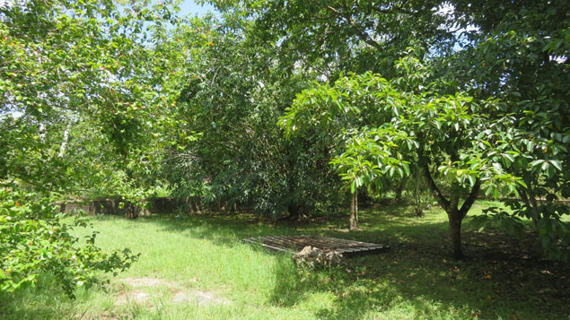 This property sits in its own yard and is fenced and secured. The yard is really large and has several plants and trees which help keep the both the front and backyard as well as the entire house naturally cool.