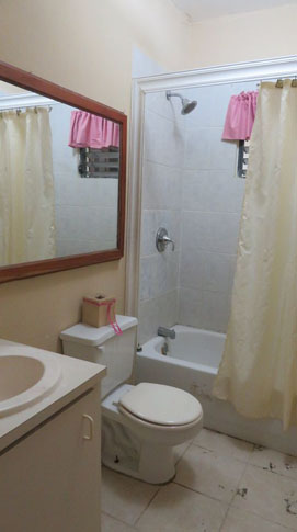 This house is located in a safe and peaceful neighborhood and comprises of 2 bedrooms 2 baths, kitchen, living room, and dining area. The kitchen consists of wooden cabinets and lockers with plenty of storage space for your kitchenware. The living area is equipped with an air conditioning unit.