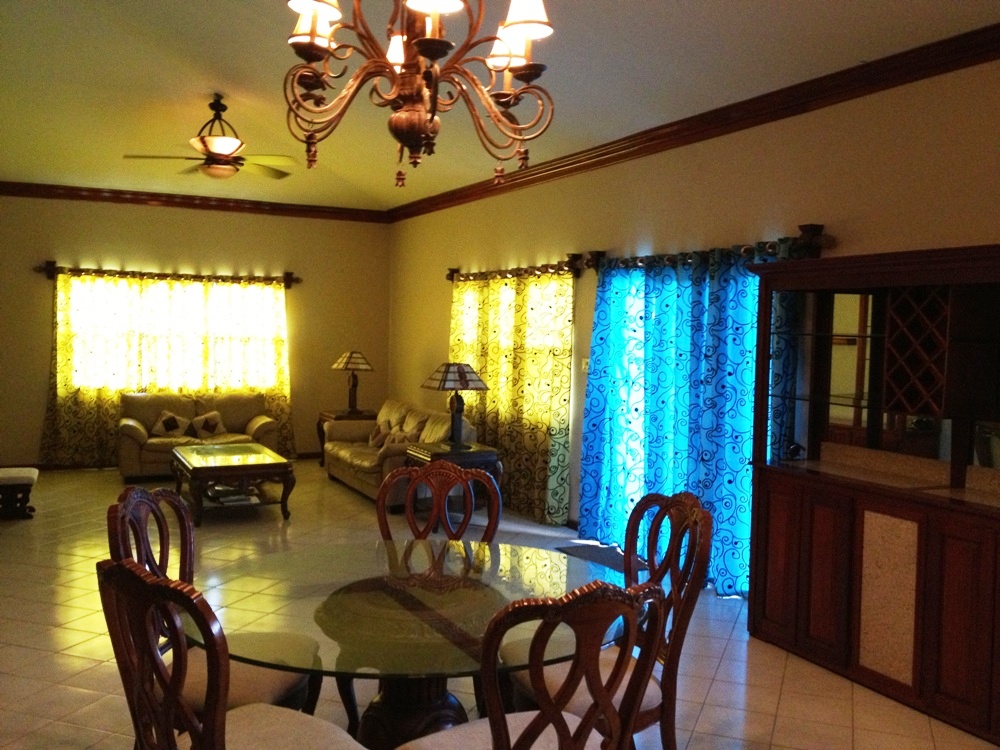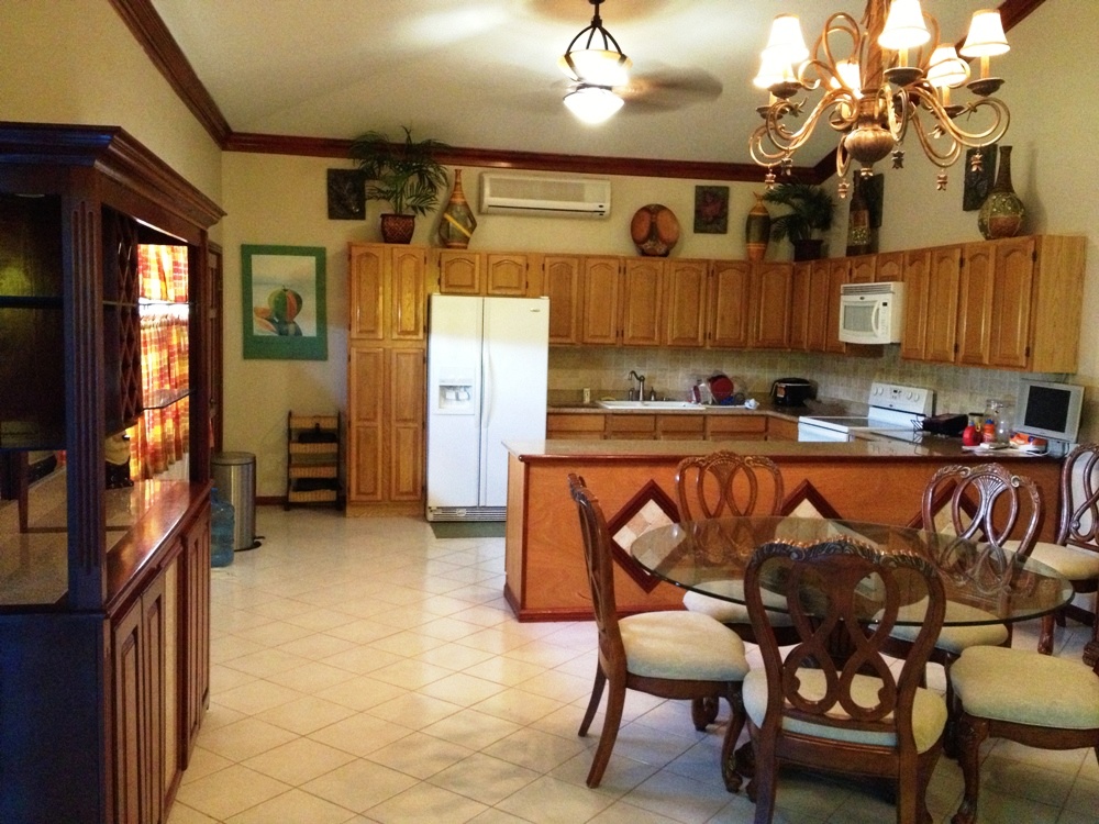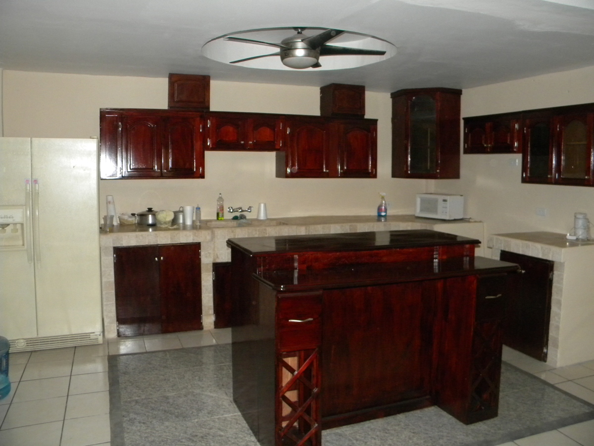 Beautiful Furnished 2 Bedroom 2 Bathroom Upstairs house in Belize City. This beautiful home has tall vaulted ceiling. The home is about 2,000 square feet and has a large open dining, kitchen and living room in which the kitchen is beautiful decorated with mahogany cabinets. The Master bedroom has a walk in closet and a large Master Bedroom. The second bedroom is decorated for a small child and has access to another bathroom. The home also has an additional room dedicated to the laundry room.