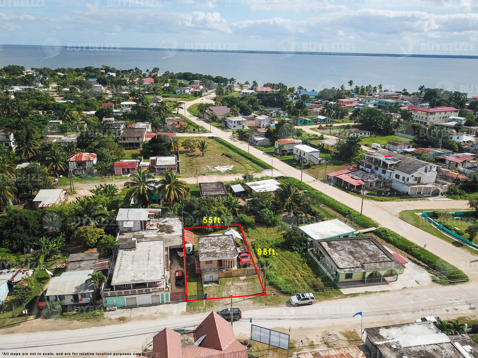 The property is located centrally in Corozal Town and close to a variety of stores, food outlets, schools, and other essential businesses. It is also approximately 550 yards from the Corozal bay or beach, which is a town favorite for swimming and other activities. It is on a paved street and has access to all utilities.