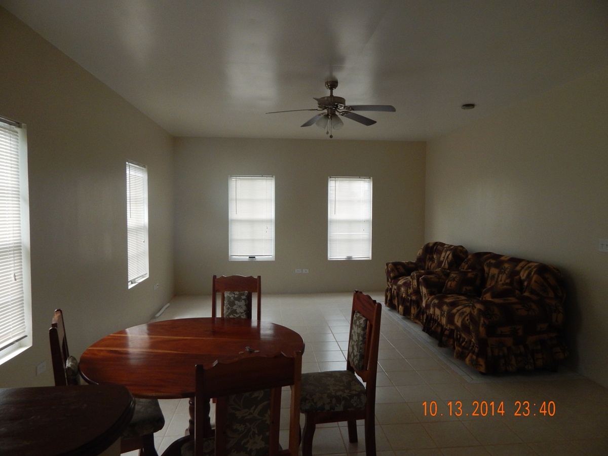 The home has 1,500 sq ft per floor for a total of 3,000 sq ft. The ground comprises of 2 Bed 2 Bath apartment and the upstairs consist of 2 Bed 2 Bath apartment. Each apartment is separate with their own meter. The apartments are well spacious with an open dining, kitchen and living room. The beautiful kitchen is built with local hardwood and fully equipped with a stove and fridge. From the living room there is a hallway that leads to the two bedrooms. One of the Bedrooms is Master Bedroom as it has its private bathroom. Each Bedroom includes a double bed along with matching dressers. At the end of the hallway is the utility room along with the guest bathroom. The utility room is equipped with a washing machine but not a dryer but this can be done easily.