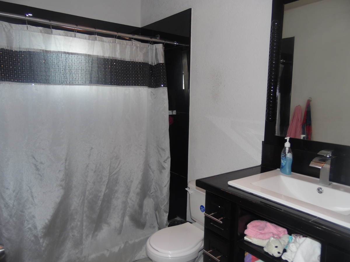 The other two bedrooms are spacious to fit a queen size bed. The bedrooms both have their own built in closet. The guest bathroom has a shower stall..