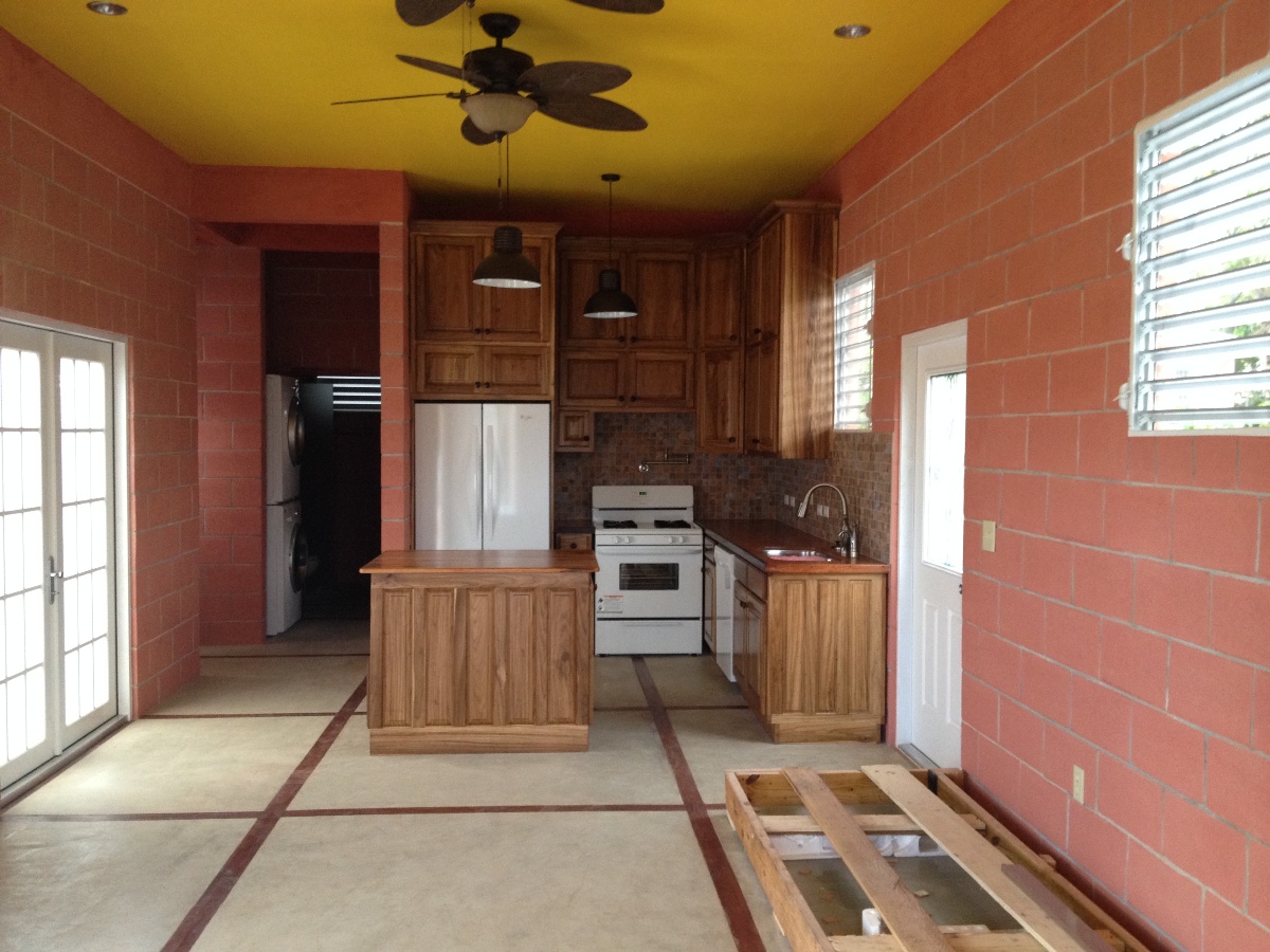 Beautiful modern brand new 3 Bed 2 Bath house. The home was completed in June 1st 2014. The home is completely fenced and is filled with stone throughout the yard to limit the amount of yard maintenance. The home has an open dining kitchen and living room. From the living room one can enter the covered porch or the indoor garden area which is great for a private outdoor breakfast. Each bedroom has its own closet space and would fit a double bed quite comfortable. The Master Bedroom is large and comes with private large bathroom along with a large walk in closet. The Master Bedroom has its private access to the indoor garden area.
