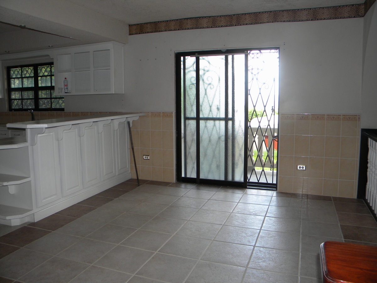 The home is of concrete construction and it has a tin roof with PVC gutters. There is an attached car garage, a large concrete parking area to the front of the house, and detached maid’s quarters in the back. All windows have decorative burglar bars and main entrance doors are protected. The house has ceramic floor tiles throughout, wooden kitchen cabinets, and popcorn stucco-style finish on the ceilings.