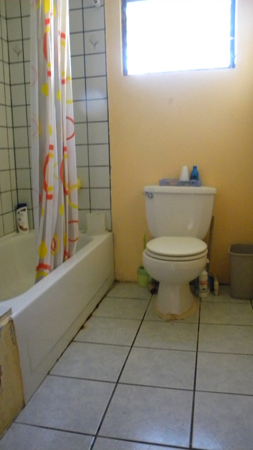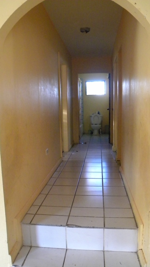 This is a three bedroom, two bathroom concrete home with burglar bars. The home is completely tiled with closets in the master bedroom. The property is fully fenced and is situated on a corner lot.