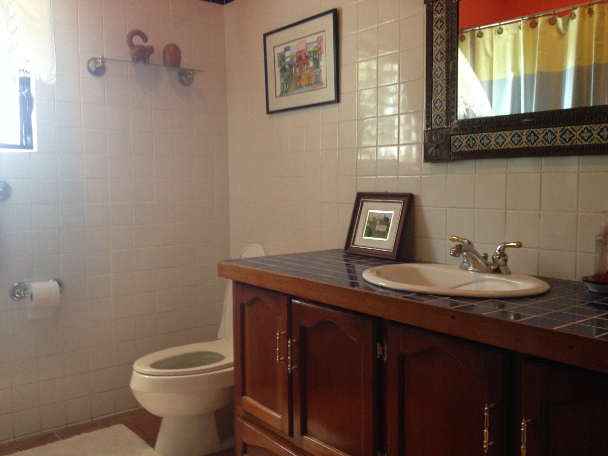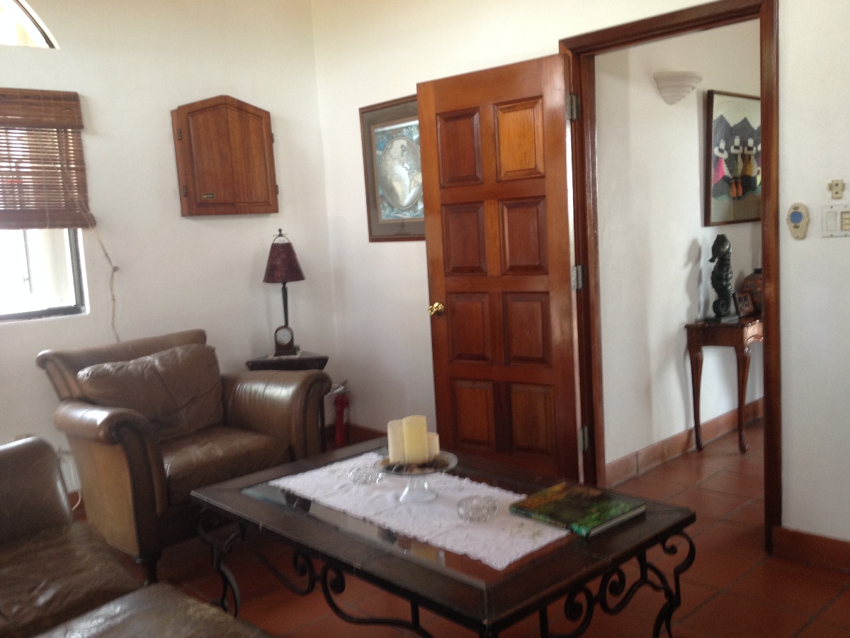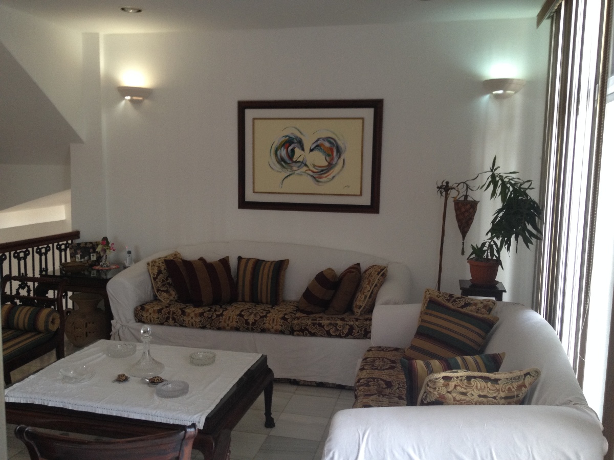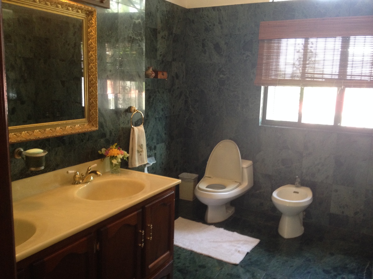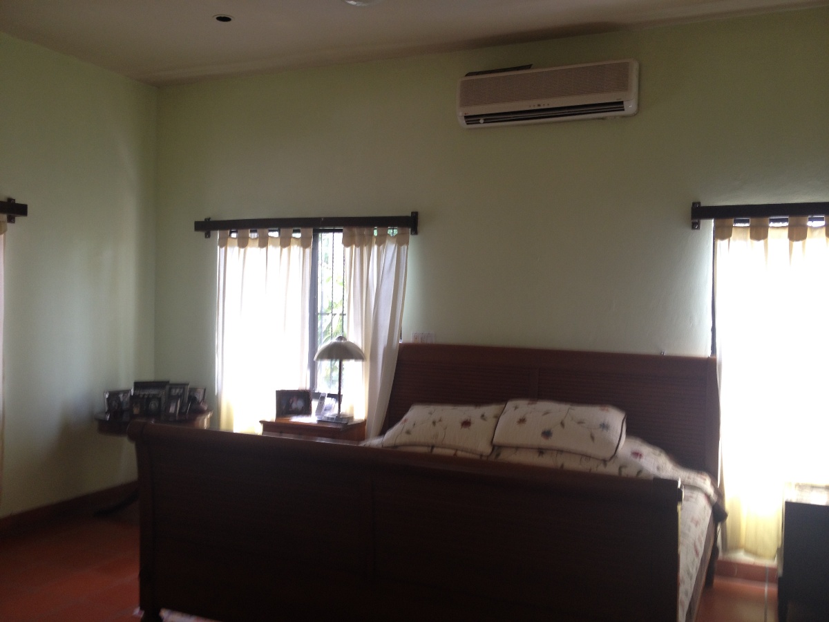 The second floor consists of kitchen, living room, dining, 2 Bedrooms, full bathroom and a balcony. The kitchen is completely made of local hardwood stained Mahogany. Both Bedrooms are equipped with double beds each having its own closet space and both are air conditioned. The kitchen has a lot of storage space including cabinets as well as a large pantry. The dining room is well lit facing the street and can fit a large 6 chair dining table. All the light fixtures on the second floor are completely modern and made up of mostly recess lighting. The flooring for the second floor is a mixture of Marble and beautiful 12 inch tiles.