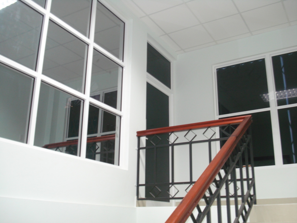 The building is divided into three separate floors. The first floor is elevated about 3ft to 4ft off the ground. Each floor is equipped with white porcelain tiles, male/female bathroom, kitchenette, Central Air, Mahogany wood framing and storage spaces. Each floor has its own central air unit which can minimize the amount of electricity needed to run the building day by day. On the fourth floor is the roof top in which it is a wide open space that has a beautiful view of downtown Belize City and the Caribbean Sea.