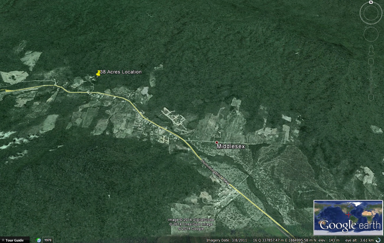 Must go property. The owner has 38.8 Acres of land located in Middlesex village. This property is only 1000ft away from the main Hummingbird Highway. The property backs the Manatee Forest Reserve and has about 1,200ft of road reserve frontage. This property is in a jungle state and would be excellent for anyone seeking a large property close to St. Margaret’s Village.
