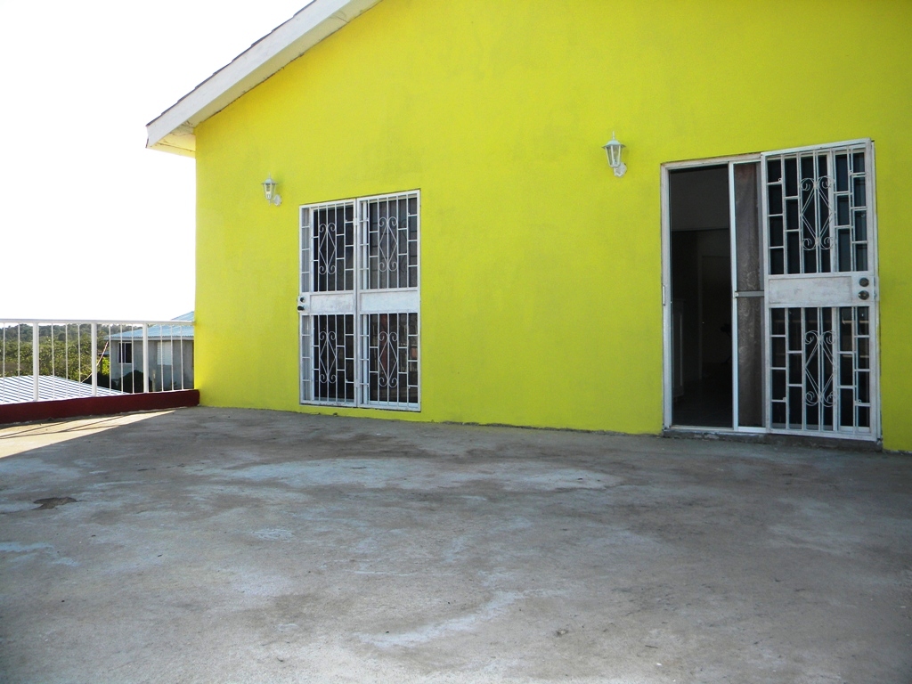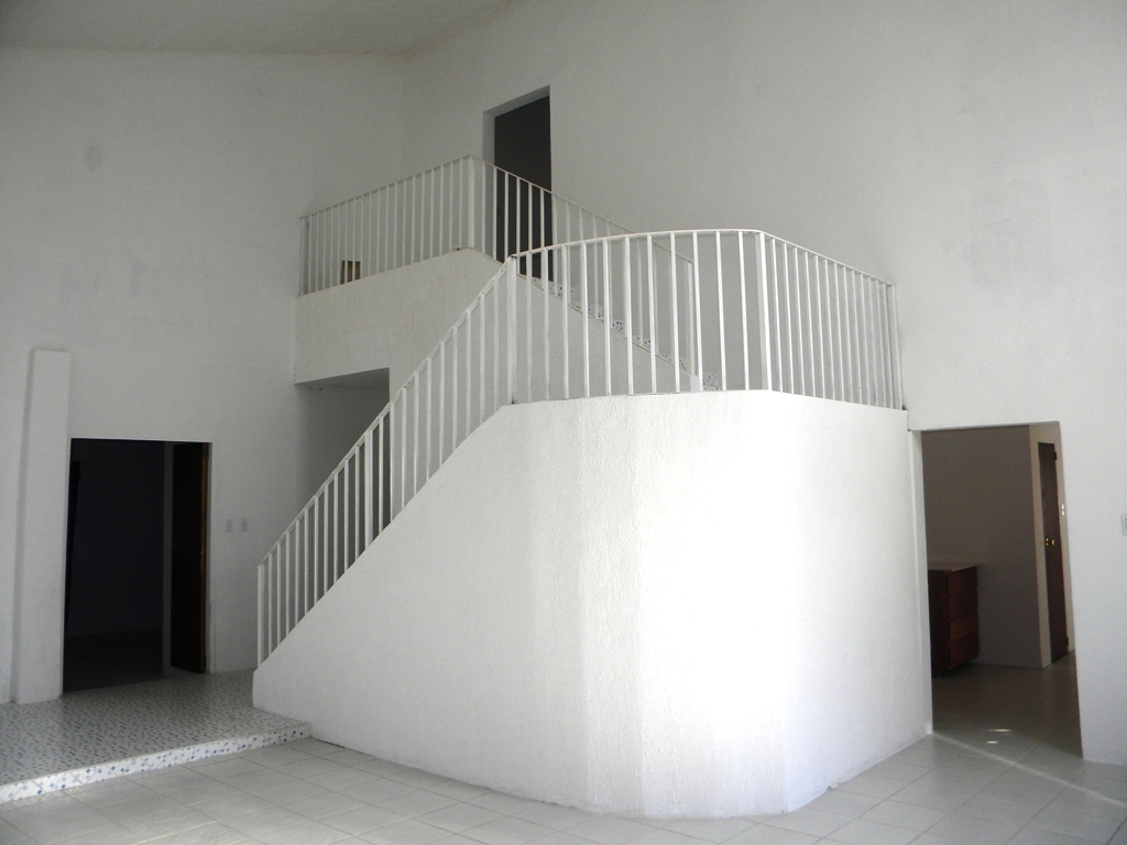 Concrete cement stairs that leads to the second floor that measures approximately 1000sq ft. Upstairs mainly comprise of 3 Bedrooms and 2 Bathrooms. The two smaller bedrooms share a common bath and a common private balcony that overlooks the 8 mile development. Across the hall is the Master Bedroom with its private bathroom, walk in closet and private back balcony overlooking the savannah land. The Master Bedroom is also contains an A/C unit.