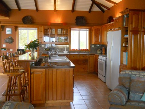 The great-room is a large, architecturally interesting, gathering place for both entertaining and personal time. The eight place custom made mahogany dining set and buffet offers a wonderful setting for group dining. The custom designed kitchen area contains every modern upscale appliance, including a commercial icemaker, convection microwave, Amana side by side, and prep sink. The cabinets are crafted from tropical red cedar, and mahogany. The countertops are granite, framed in rosewood. The entertainment center contains every item of latest technology for listening and viewing pleasure. Speakers, with volume controls, are installed throughout the house.