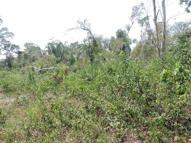 The property is a large area containing 6 acres that is covered with tree coverage and tall grasses.