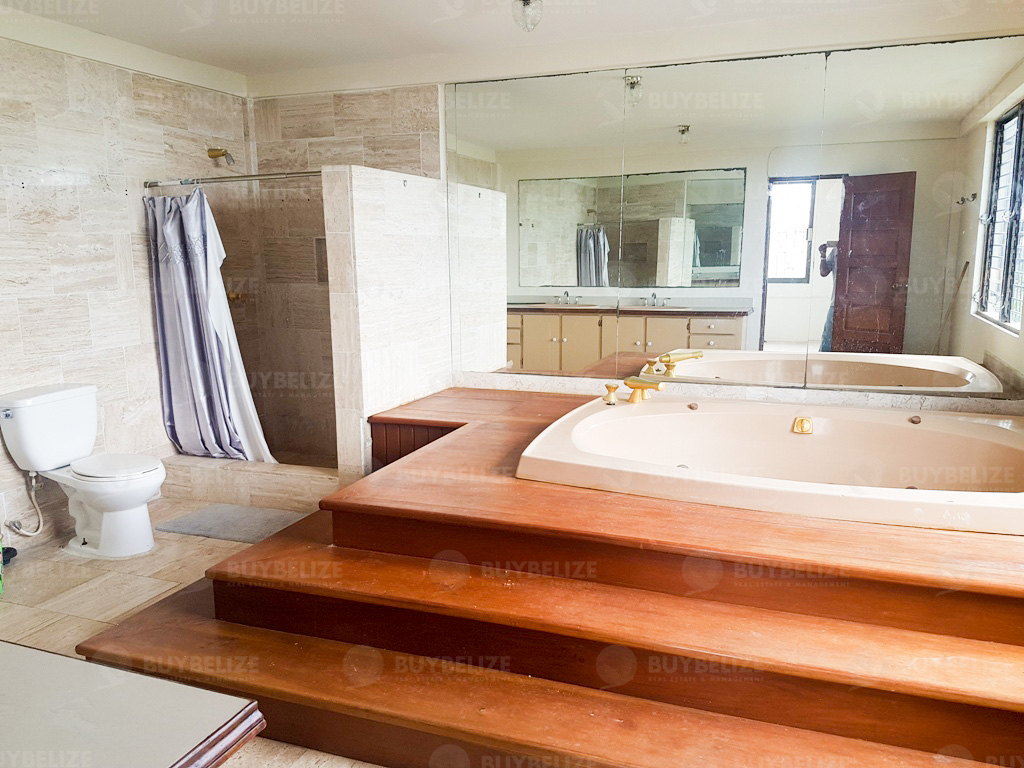 From the living room there is a beautiful Mahogany staircase that leads to the 4th floor. The 4th floor has an open view of the living room below. The 4th floor comprises of 4 bedroom 2 bathrooms. Each bedroom has access to its own closet space. The bedrooms are fairly large enough to fit a queen size bed comfortable. Each room have a beautiful view overlooking the Caribbean and Tourist Village. The Master bedroom is large to fit a king size bed comfortable have a walk in closet along with its private bathroom with a Jacuzzi, in which even the bathroom have a beautiful sea view. The second largest bedroom also has access to a walk in closet.