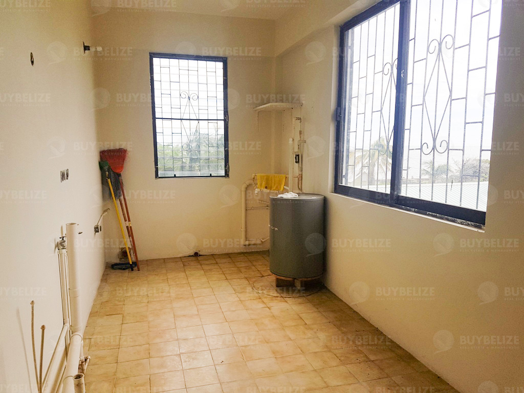 The large apartment is located on the 3rd floor. The entrance is from the second floor which has storage under the staircase leading to the 3rd floor. As one enters the 3rd floor they enter into an open dining, living and den room with cathedral ceiling. The entire apartment floor is marble finished. The 3rd floor also has access to a large office room near the entrance of the staircase. The living room have access to a large 600 sq ft balcony overlooking the parking area. While the kitchen is not open to the living room there is an opening from the living room that would lead to the kitchen, a second dining area, 2 bedrooms, 1 full bathroom and a laundry room. Each bedroom on the 3rd floor is sea view and has access to its built in closet. The rooms are large enough to fit a queen bed. The kitchen also has access to a next staircase that would lead outside.