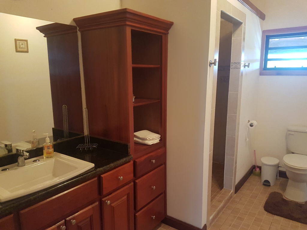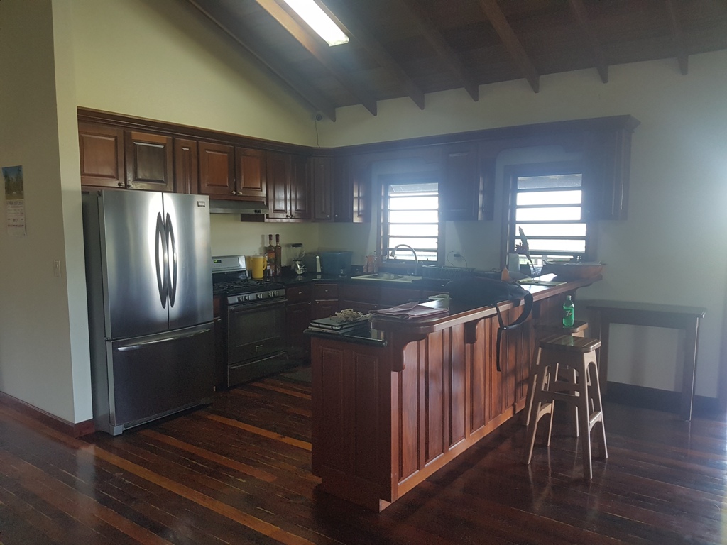 The 2nd floor consist of a large wrap around balcony, outdoor private deck, outdoor bar, 2 Bedroom, 2 Bathroom, office room, and an open dining, kitchen and living room. The outdoor private deck goes out over the hill and has a beautiful view over looking Belmopan City.
