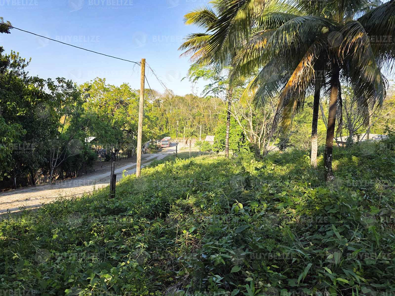 As you explore the landscape, you will discover a variety of flourishing fruit trees, including coconut and cohune palms, which add to the natural charm of the property. Additionally, the land boasts stunning views of the surrounding hills.
