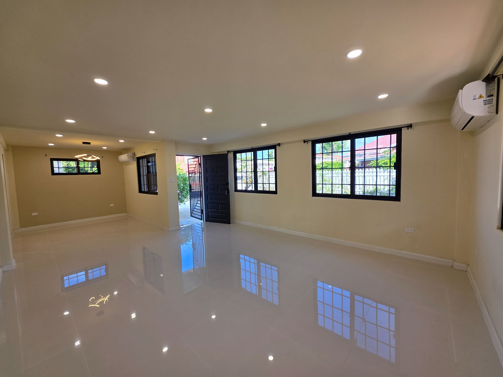 This contemporary unit boasts three spacious bedrooms and two modern bathrooms, offering ample space for both relaxation and productivity. The inviting open-concept living and dining area seamlessly connects to a fully equipped kitchen, featuring elegant wooden cabinetry and high-quality finishes that create a warm and stylish ambiance. Large windows throughout the unit flood the space with natural light, enhancing the overall atmosphere. For your comfort, the entire ground floor is equipped with air conditioning units and provides hot and cold running water.