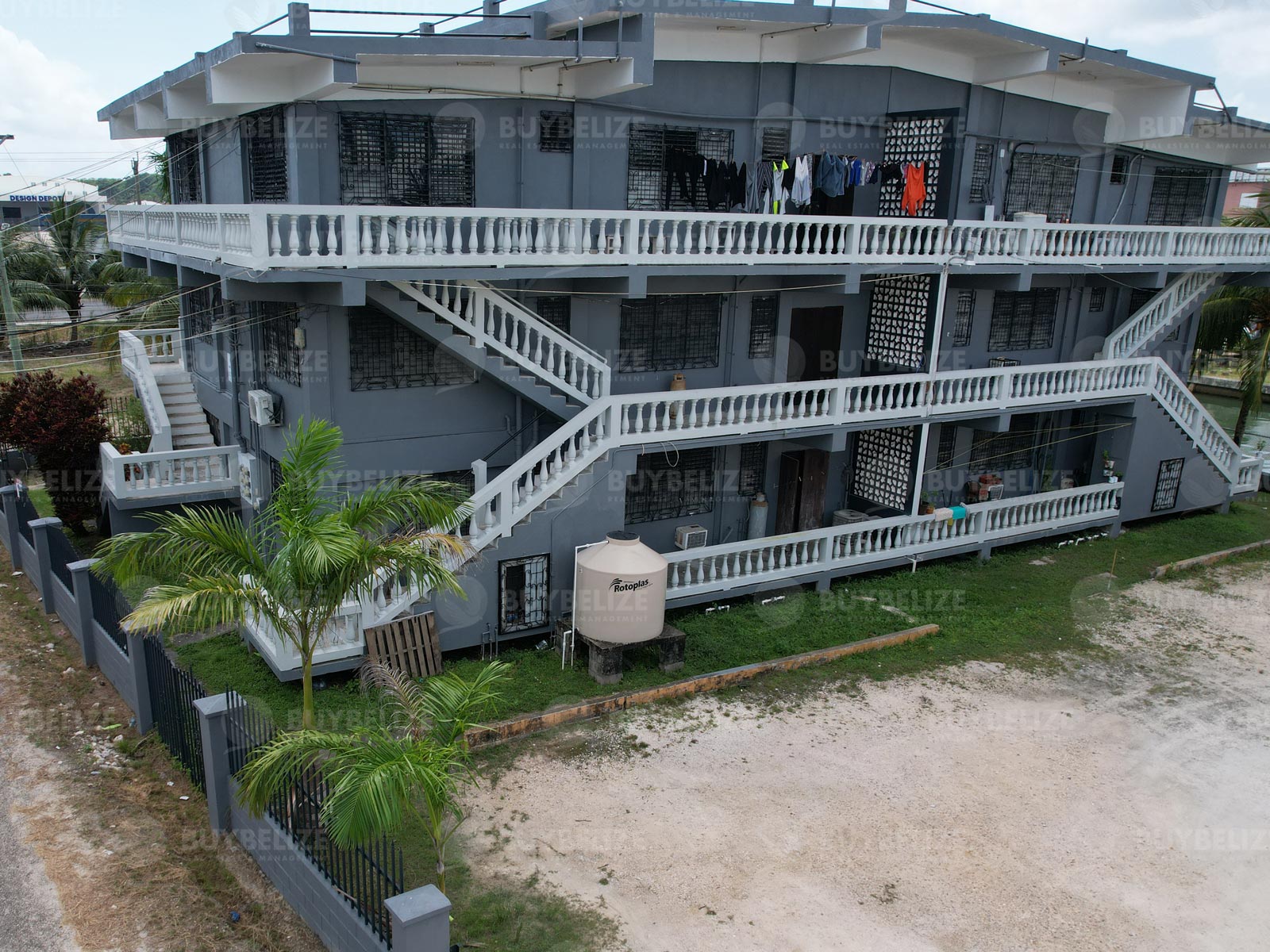 A three-story 9,723 sq. ft building with 9 apartments in Bella Vista, Belize City, Belize. This apartment complex is situated in a well sought-after neighbourhood called Bella Vista located only 3 miles from downtown Belize City. This complex sits on separate parcel of lands for a total land size of 14,665.5 sq. ft (137ft x 103ft). The property has 183.85ft of road front and 137.65 ft of canal front, in which this canal is only a 5-minute boat ride to the Caribbean Sea. The property does offer private fenced parking for its residence for up to 15 cars.