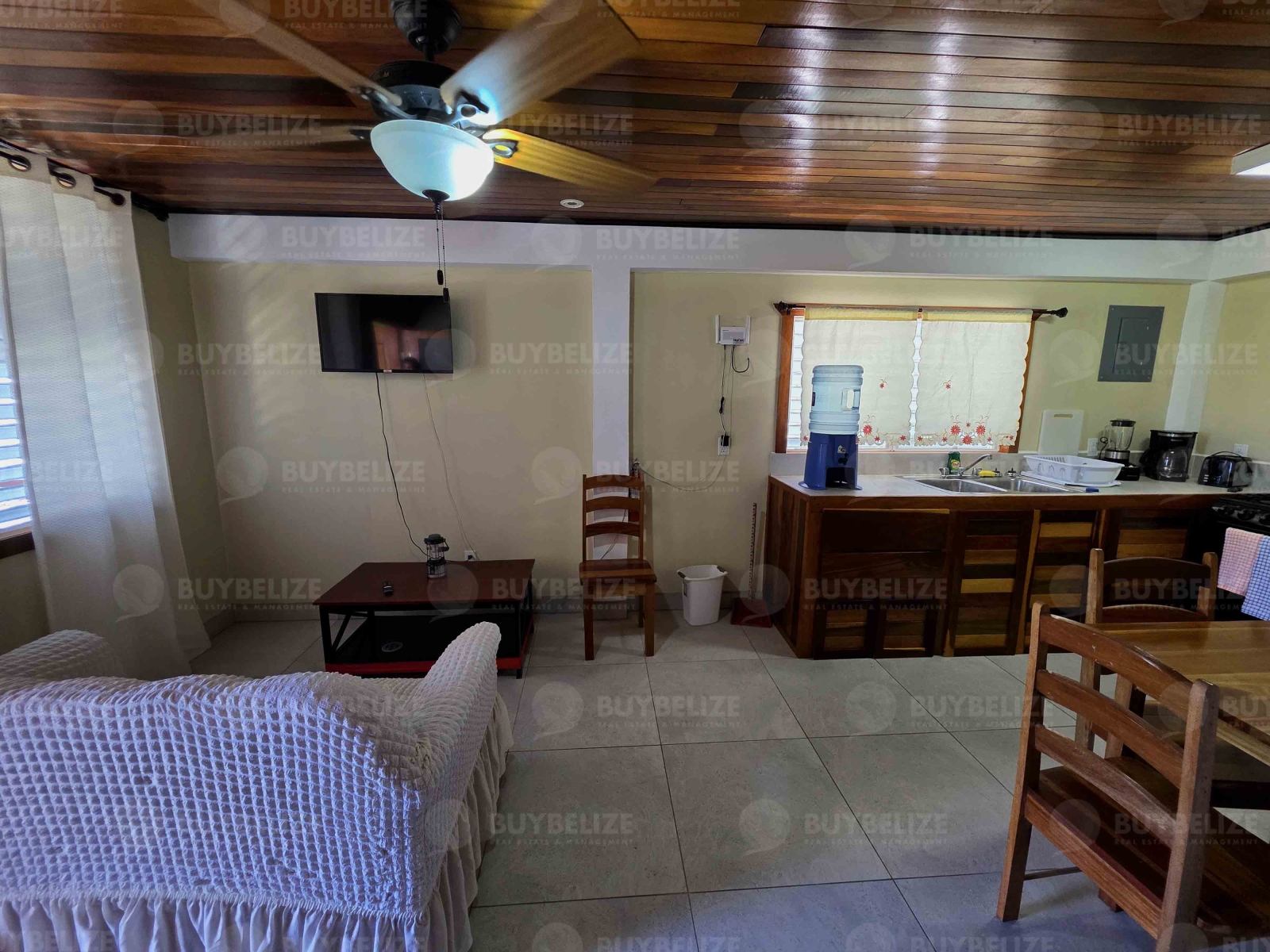 Enter island comfort with this comfy, well-maintained 2-bedroom, 1 bath apartment located in the heart of Caye Caulker. Featuring a warm and caribbean inspired touch of wood ceilings and colors,this unit offers a cozy, fully furnished living experience. Each bedroom includes a comfortable queen sized bed, air conditioning, ceiling fans and plenty of natural light. The space also includes a full kitchen, dining area and living area to unwind after a long day on the island. This home offers charm and convenience with its location being a short walk away from shops, restaurants and the sea.