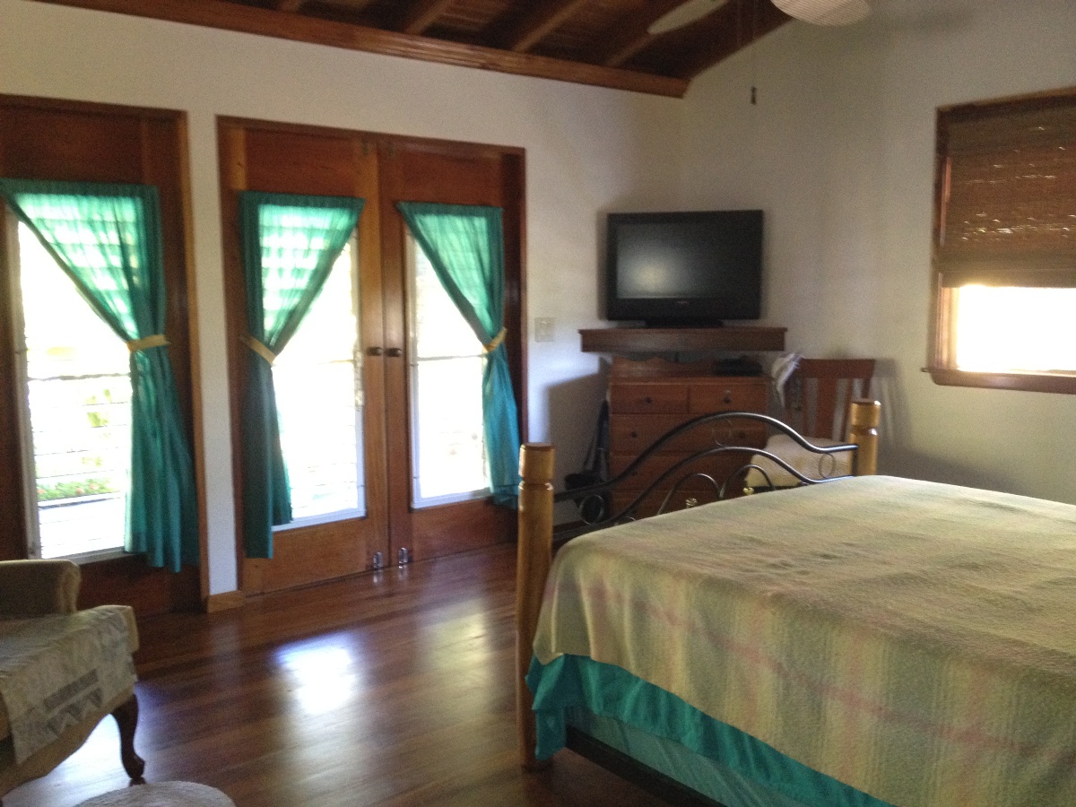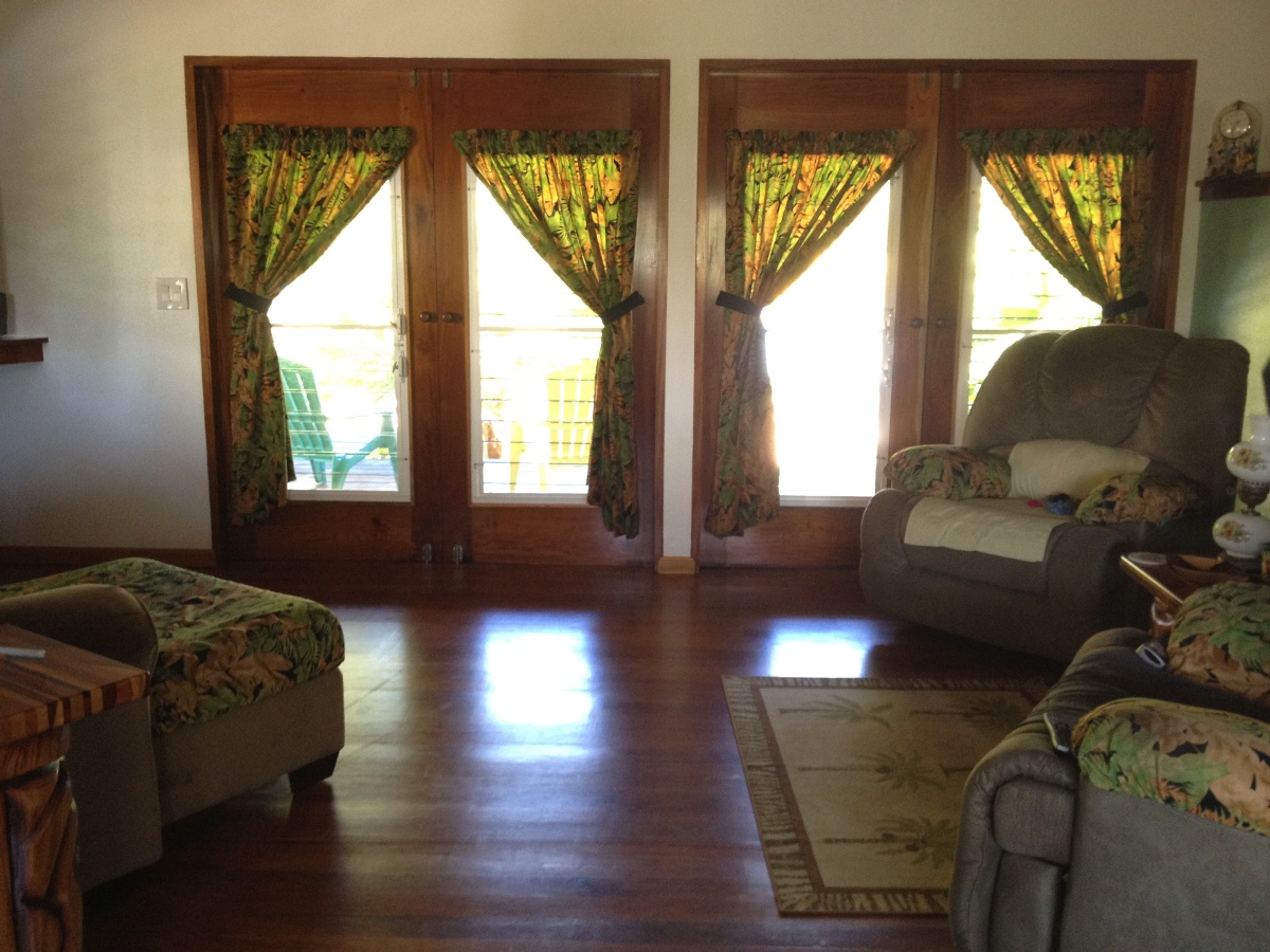 This custom made house boasts an open floor plan with hardwoods throughout, including custom made exotic hardwood cabinets and tongue and groove hardwood ceilings over hardwood rafters. The steel roof is insulated and should last a lifetime, full gutters with 4 huge cisterns to catch house rain water and 1 for guest house, 1 for boat house all plumbed and piped together with valves, filter and pressure tank to supply a constant water pressure to house and guest house.