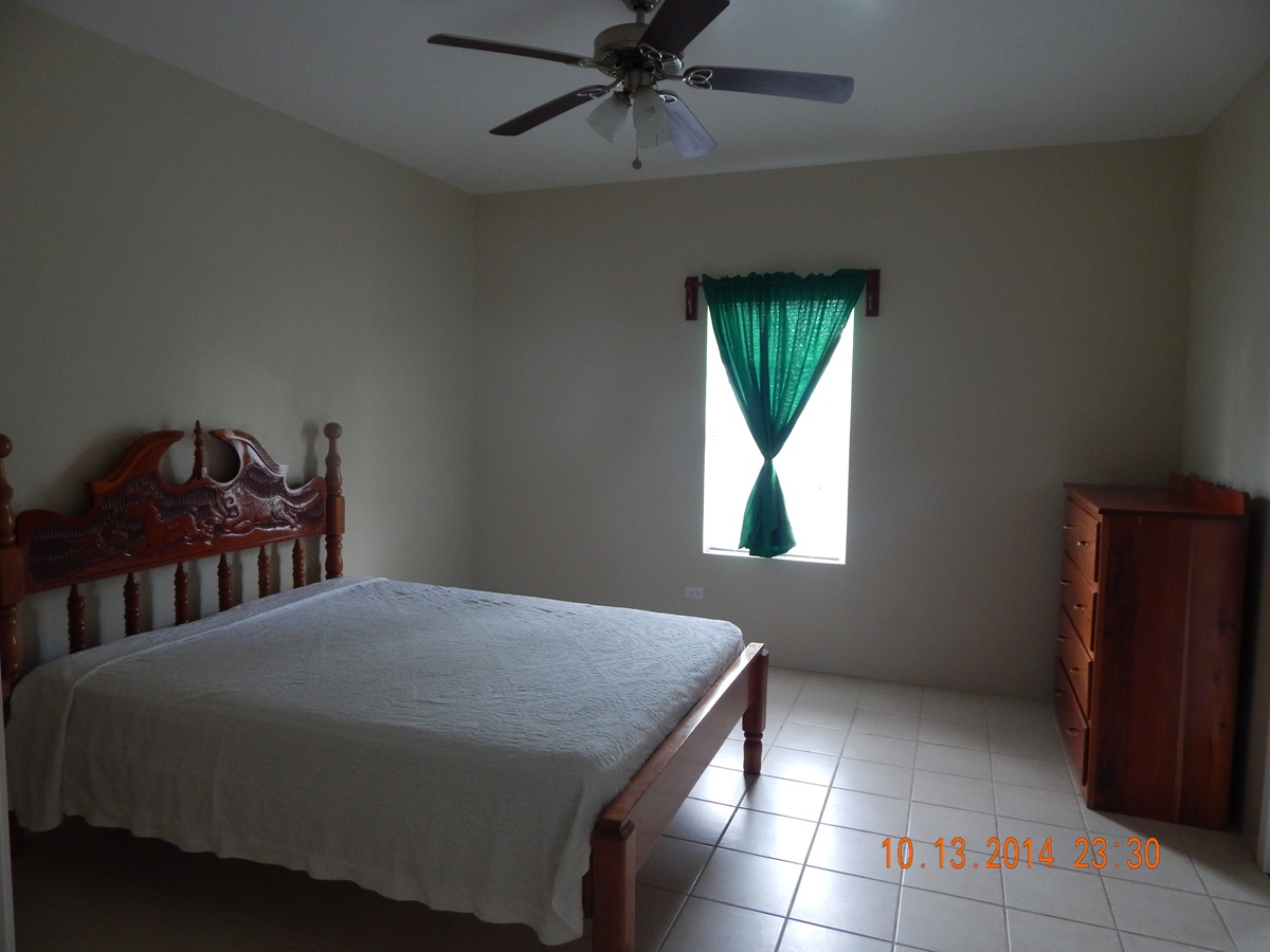 Buy Belize Real Estate Ltd is please to present a beautiful Furnish 2 Bed 2 Bath apartment in Belmopan City. The apartment is well spacious and consists of 1,500 sq ft. The apartment has an open dining, kitchen and living room. The beautiful kitchen is built with local hardwood and fully equipped with a stove and fridge. From the living room there is a hallway that leads to the two bedrooms. One of the Bedrooms is Master Bedroom as it has its private bathroom. Each Bedroom includes a double bed along with matching dressers. At the end of the hallway is the utility room along with the guest bathroom. The utility room is equipped with a washing machine but not a dryer but this can be done easily.