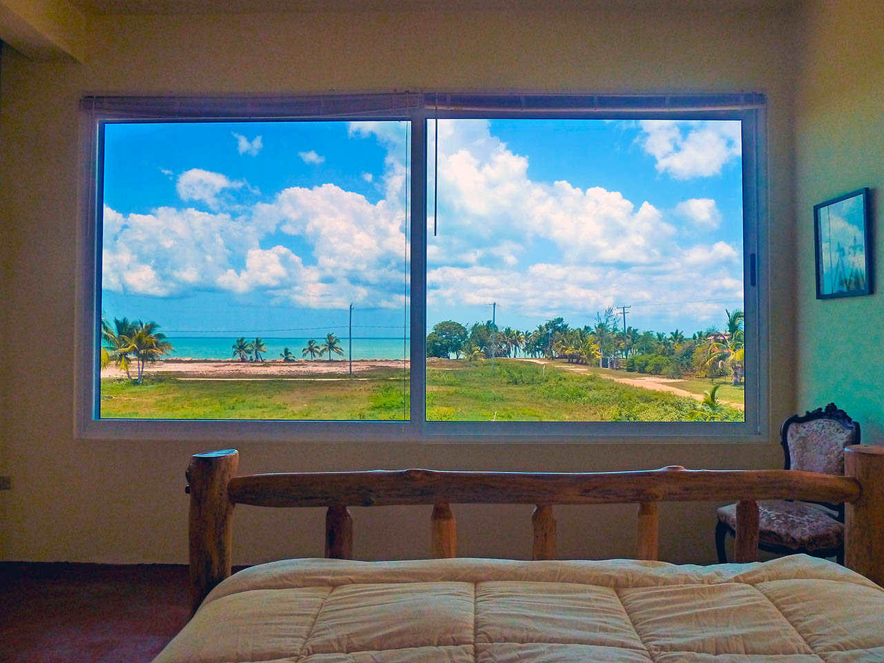 The guest bedroom downstairs has wonderful views of the Bay and a bathroom next to it. The master bedroom upstairs has an en-suite bathroom with an additional walk-in wardrobe. In the master suite, there are additional closets with mirrored doors from floor to ceiling. The room has amazing views across the Bay towards Sarteneja. Upstairs there is the Great Room with magnificent views of the Bay and the surrounding jungle. There is a formal dining area and a large lounge area. Downstairs is a large open entrance hall leading to an open-plan lounge, dining area, and kitchen. The kitchen consists of solid mahogany cabinets with granite tiled surfaces. The kitchen has brand-name appliances included in the house's sale. There is a black composite sink with high-end quality fittings.
