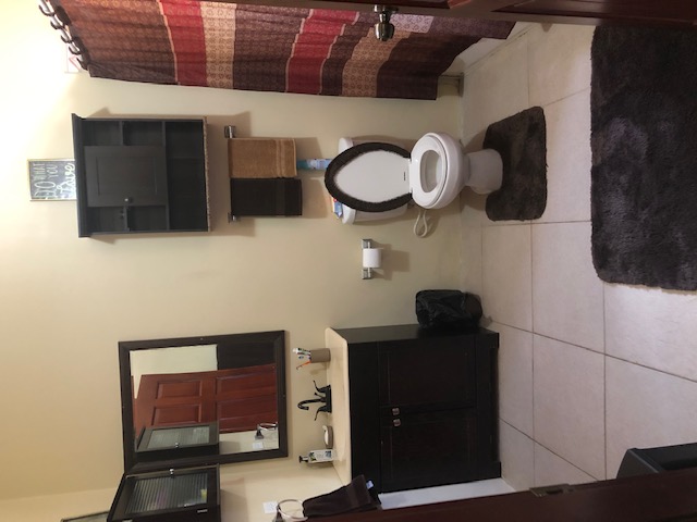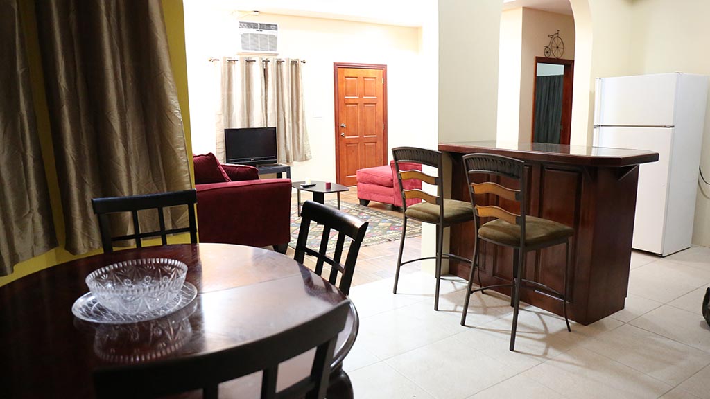 The house has 2 spacious bedrooms that have newly built closet spaces. These two bedrooms share one main bathroom that is fully equipped. The bathroom has access to hot and cold water. The main living area is open-planned with kitchen, living, and dining areas—all elegantly decorated with cozy and comfortable furnishings. There is also a small room designated for laundry. The entire house is fully tiled and there is a heavy-duty air conditioning unit that provides cool air to the entire house.