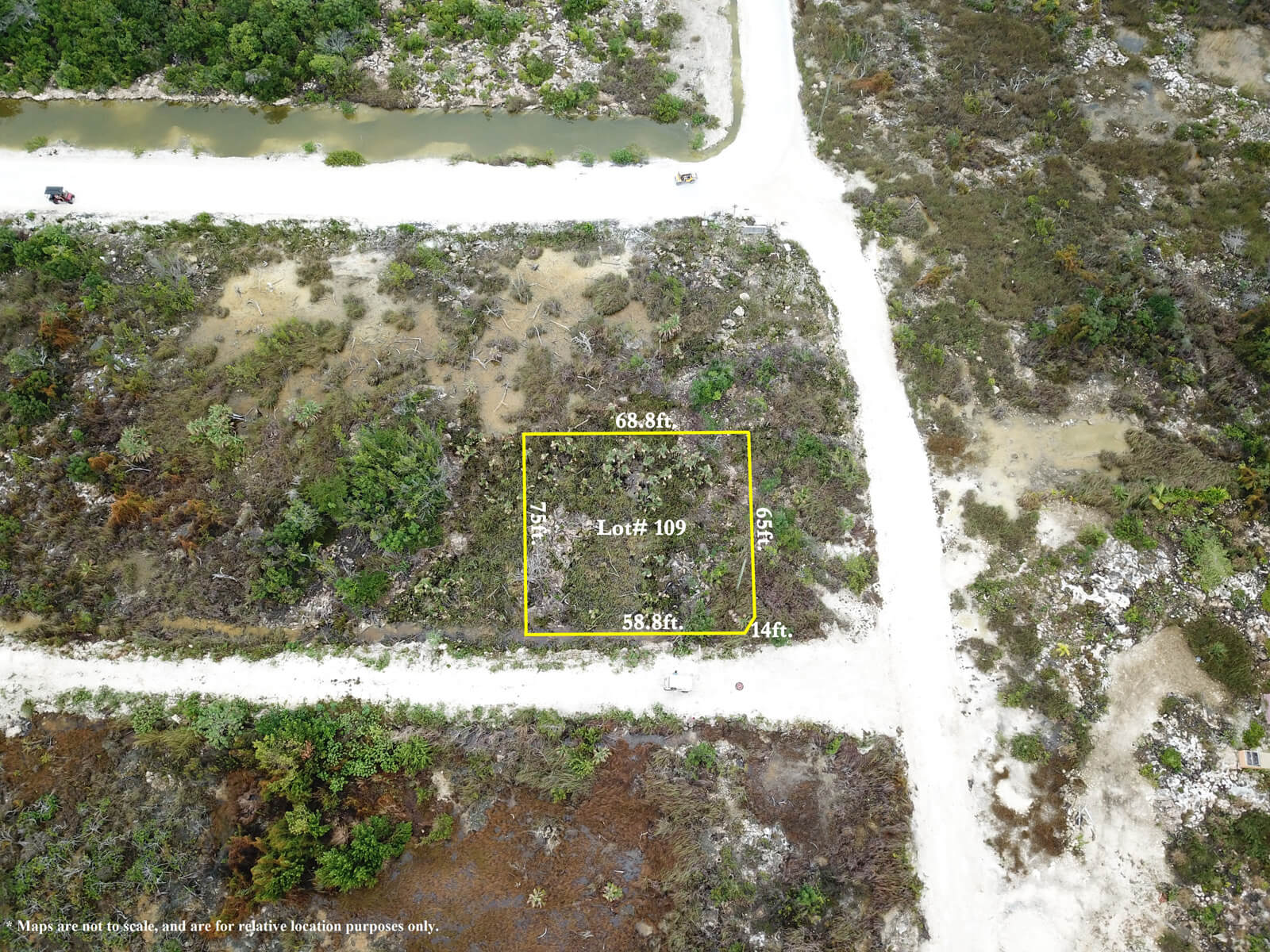 Buy Belize Real Estate LLP, presents a prime lot located in the Grand Belizean Estate development near Secret beach. The property measures an estimated 69ft x 75ft for a total of 5,175 sq. ft. This property is located right off the main street from San Pedro Town that leads to Secret beach, and will be receiving plenty of traffic, thus giving the property some commercial value. It has been cleared of its original vegetation and may require to be land filled. It has access to a road but there are no utilities available.