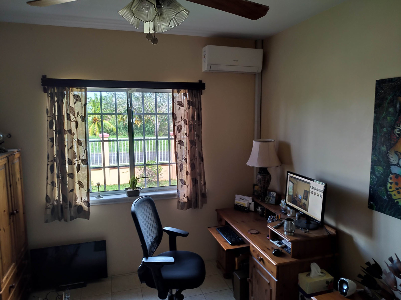 Buy Belize Real Estate is pleased to offer you the opportunity to own your dream home in the beautiful city of Belmopan. This cozy tropical home comprises three bedrooms, two full bathrooms, a kitchen, a living room and dining area, and an outdoor storage room. This lovely home has a/c in the lounge, Master bedroom, and guest bedroom 2. This beautiful home offers approximately 1,500 square feet of living space and sits on a lot measuring approximately 65 feet wide by 85 feet in depth and boasts a very large well-landscaped patio with several beautiful tropical plants. This property is fully burglar barred and the yard is fully fenced. A paved covered driveway makes accessing the home very easy and convenient.