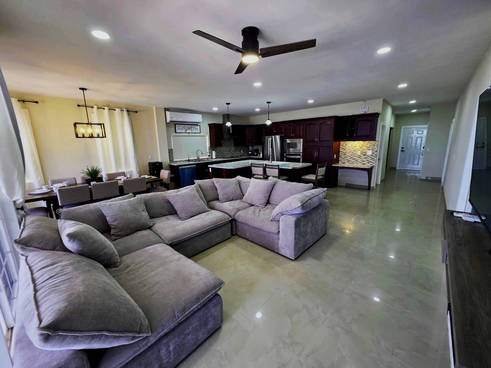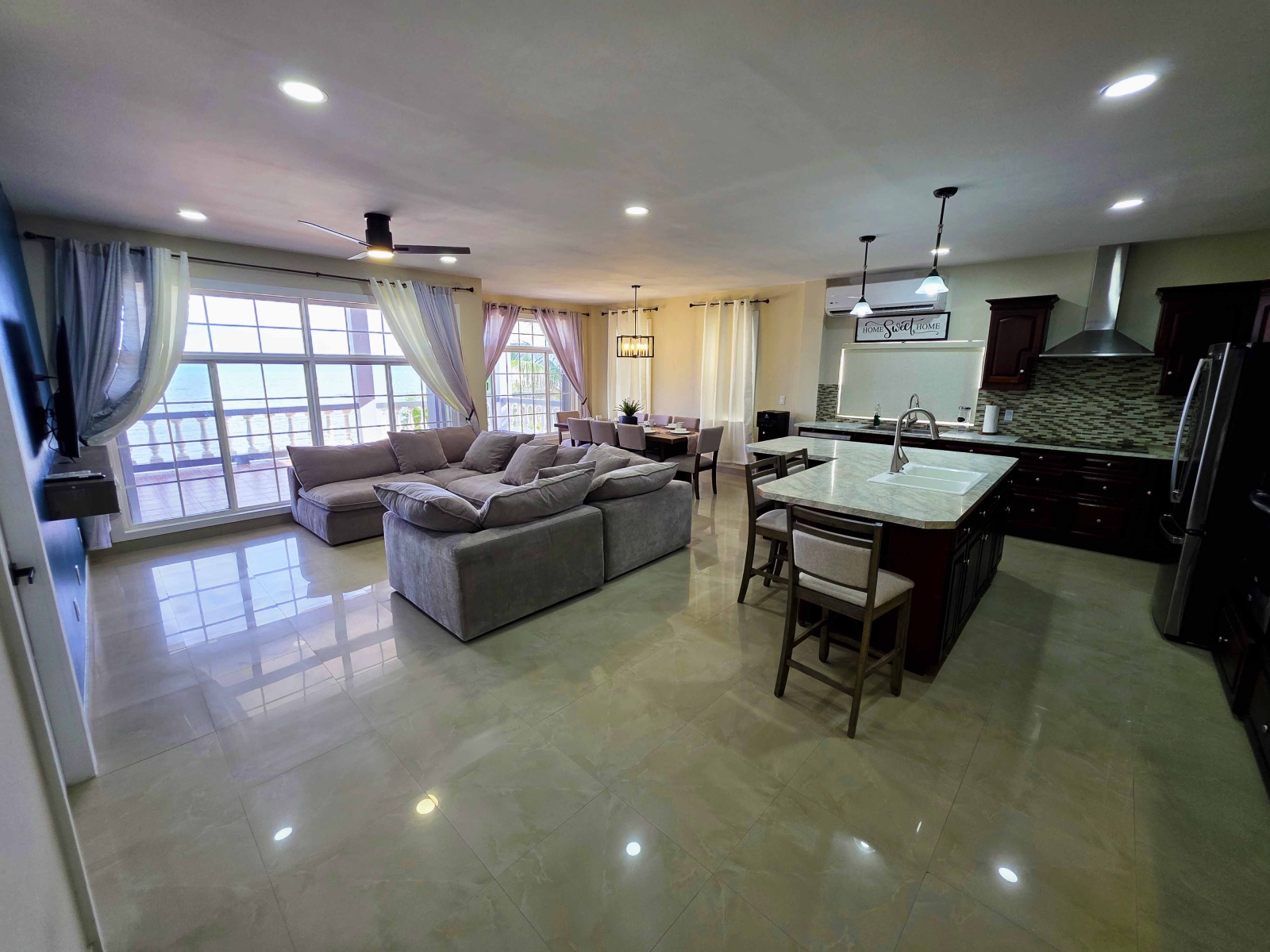 Experience modern coastal living in this stunning 2 bedroom, fully furnished beachfront apartment just minutes from Belize City. This beautifully designed unit offers breathtaking beach views from the open-concept living, dining, and kitchen areas framed by large windows that fill the space with natural light and sea breeze.
