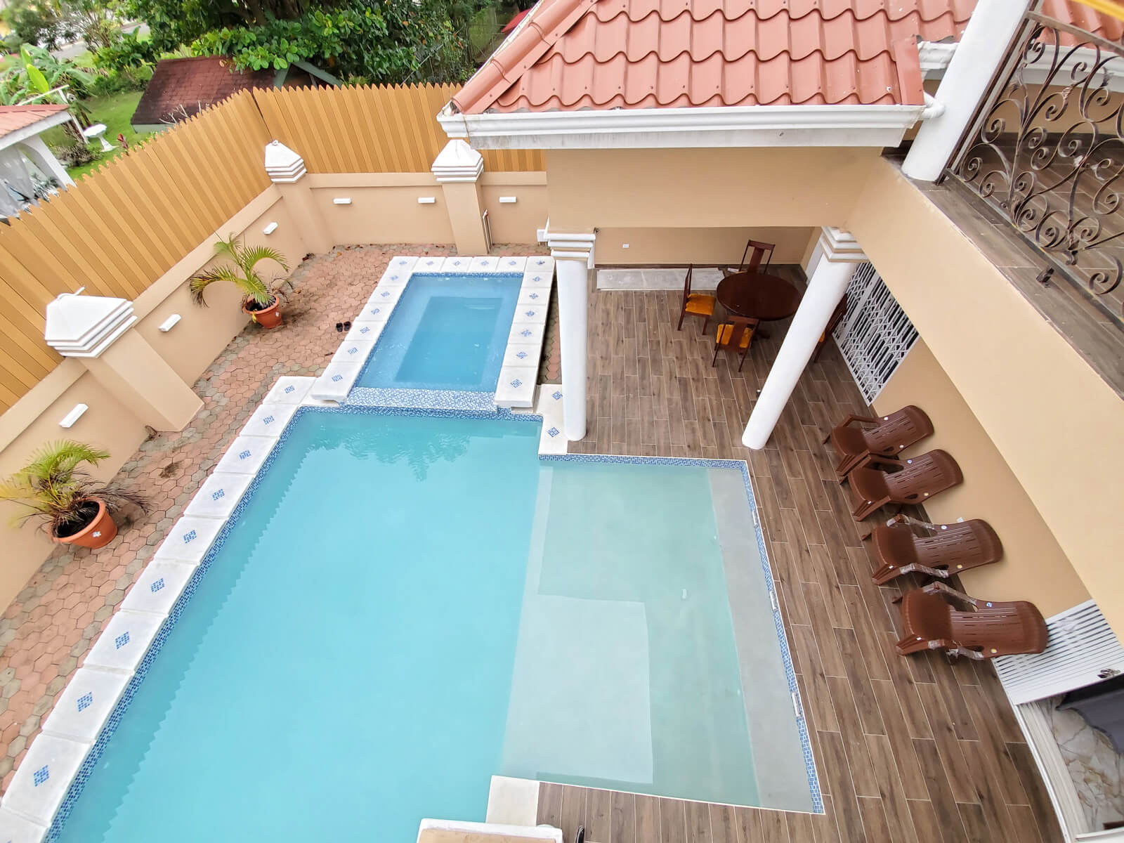 Upstairs, guests will enjoy a large balcony overlooking the pool and landscaped patio, accessible from both upstairs guest bedrooms—offering beautiful views and fresh breezes.