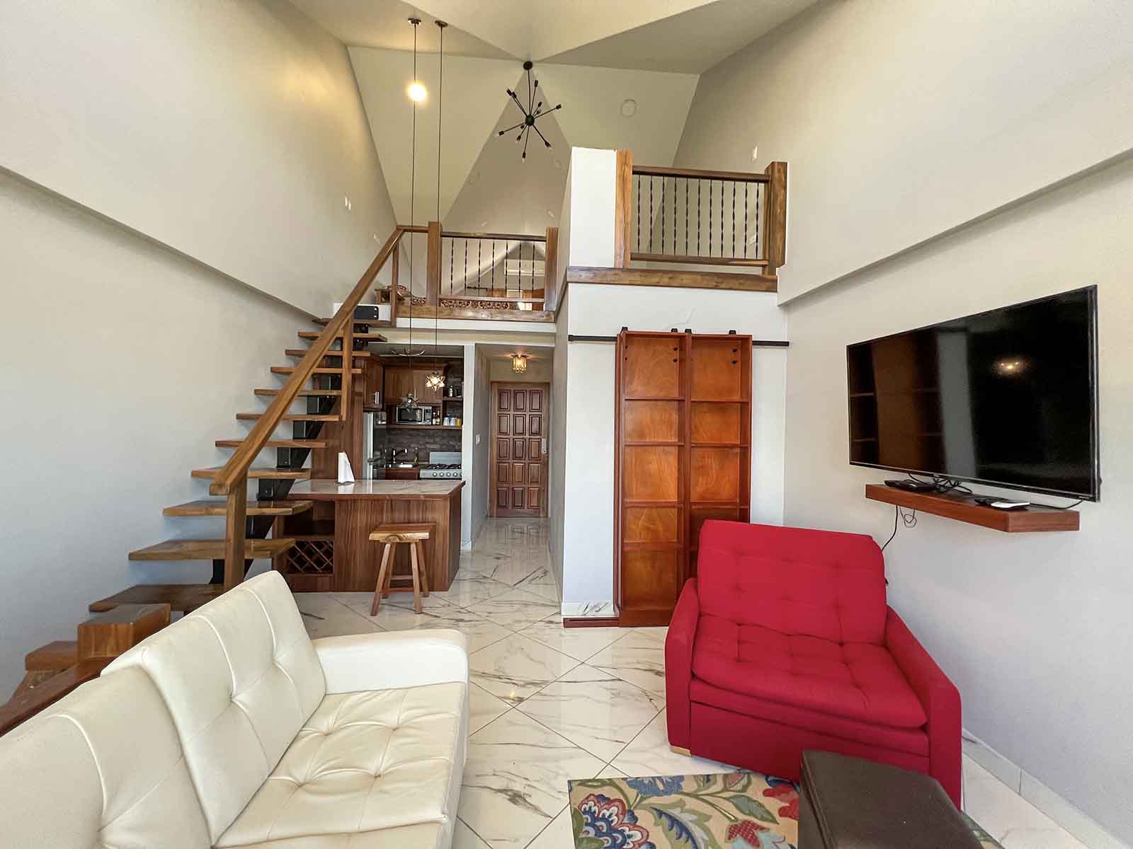 This loft is the perfect choice for anyone looking for a comfortable and stylish living space. With a fully furnished interior, including a comfortable queen size bed, built-in walk-in closet, living room furniture, and a flat-screen TV, you'll have everything you need to feel at home.