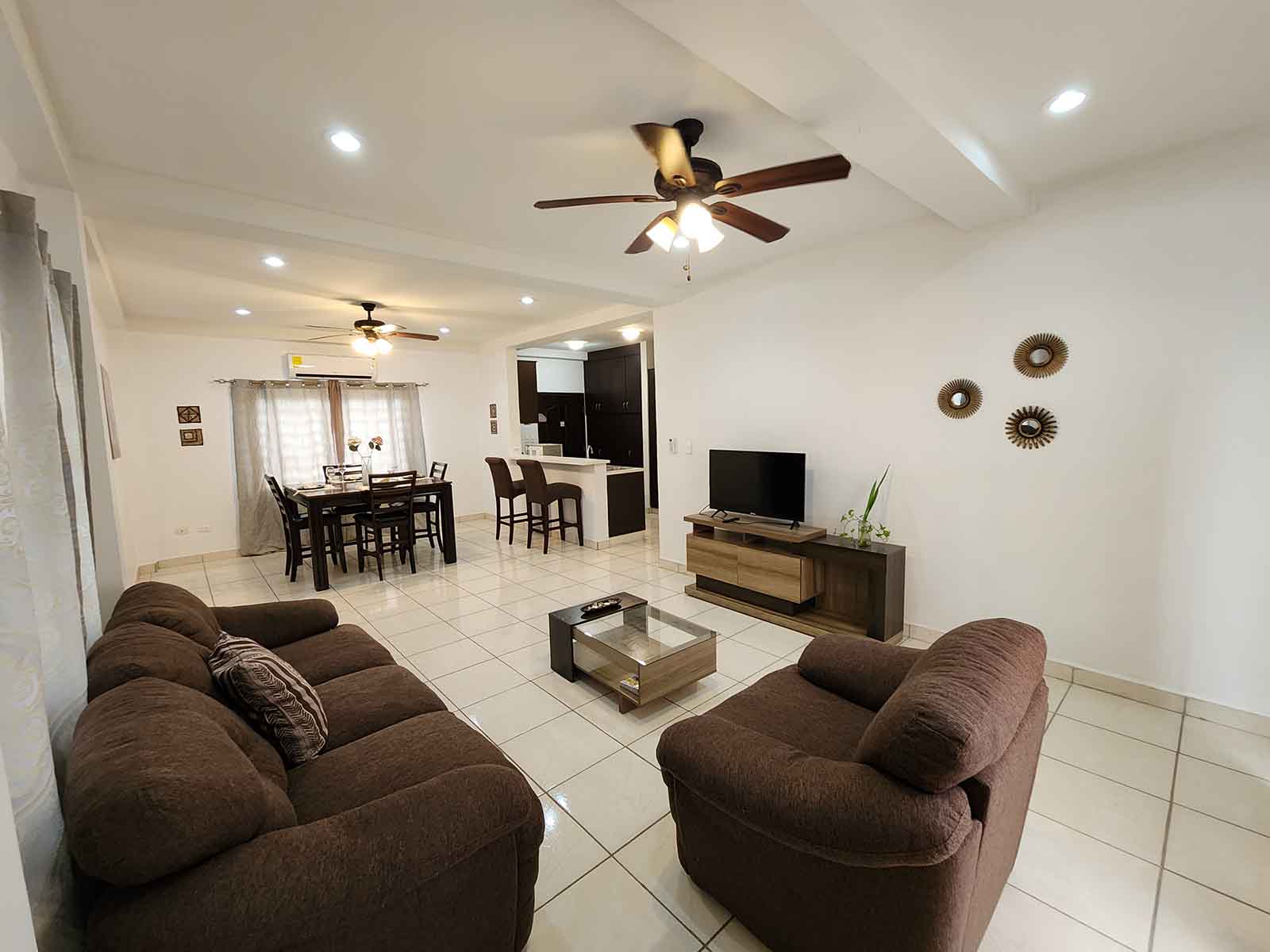 Buy Belize Management Ltd. presents for rent a furnished 2 bed 2 bath apartment. The apartment is located on the Ground floor of an apartment building in a safe and quiet neighbourhood.