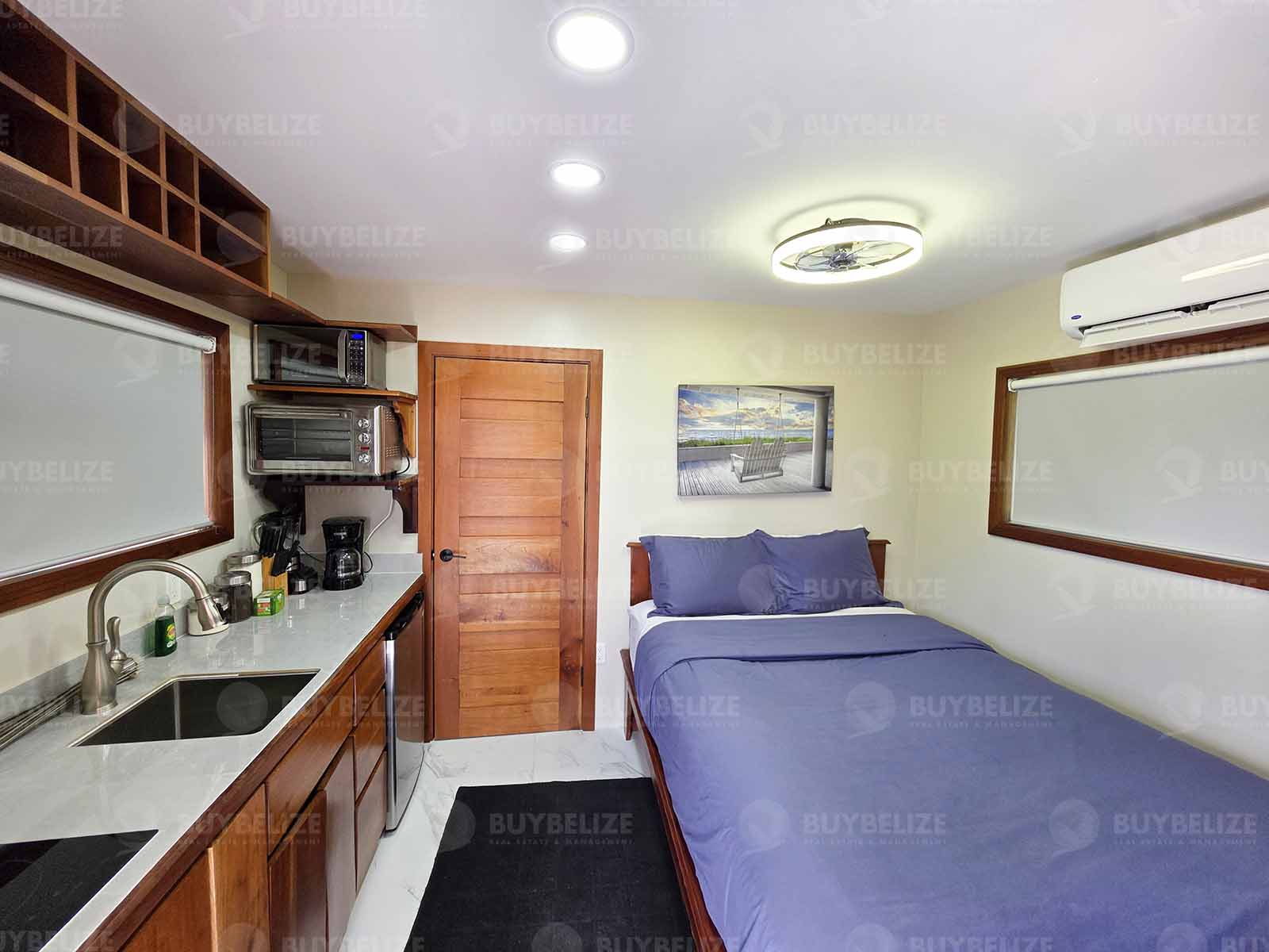 One-of-a-kind listing in Caye Caulker. While this studio home only measures 156 sq ft, it is outfitted with everything that one would need to live.