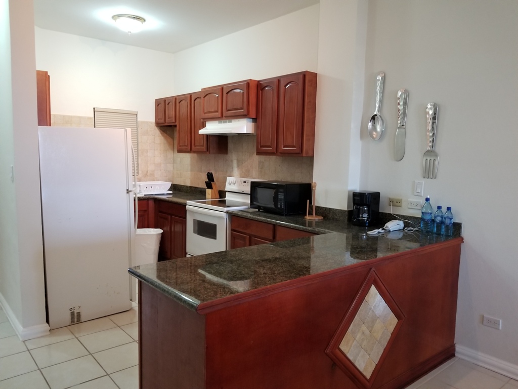 These fully furnished apartments include fridge, stove, washer, dryer, beds, table, couches, and a private Jacuzzi in the Master Bedroom. Each unit is fully equipped with a beautiful marble counter top. The Master Bedroom does come with its own Master Bathroom. The condos are equipped with hot and cold water, cable and internet. There is a standard fee of $37.50 USD for Water and electricity is privately billed. Each condo consist of central air. Tenants just need to bring their clothes.