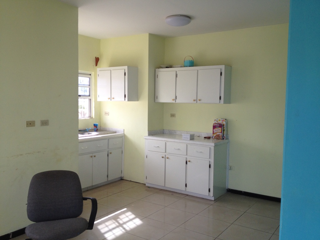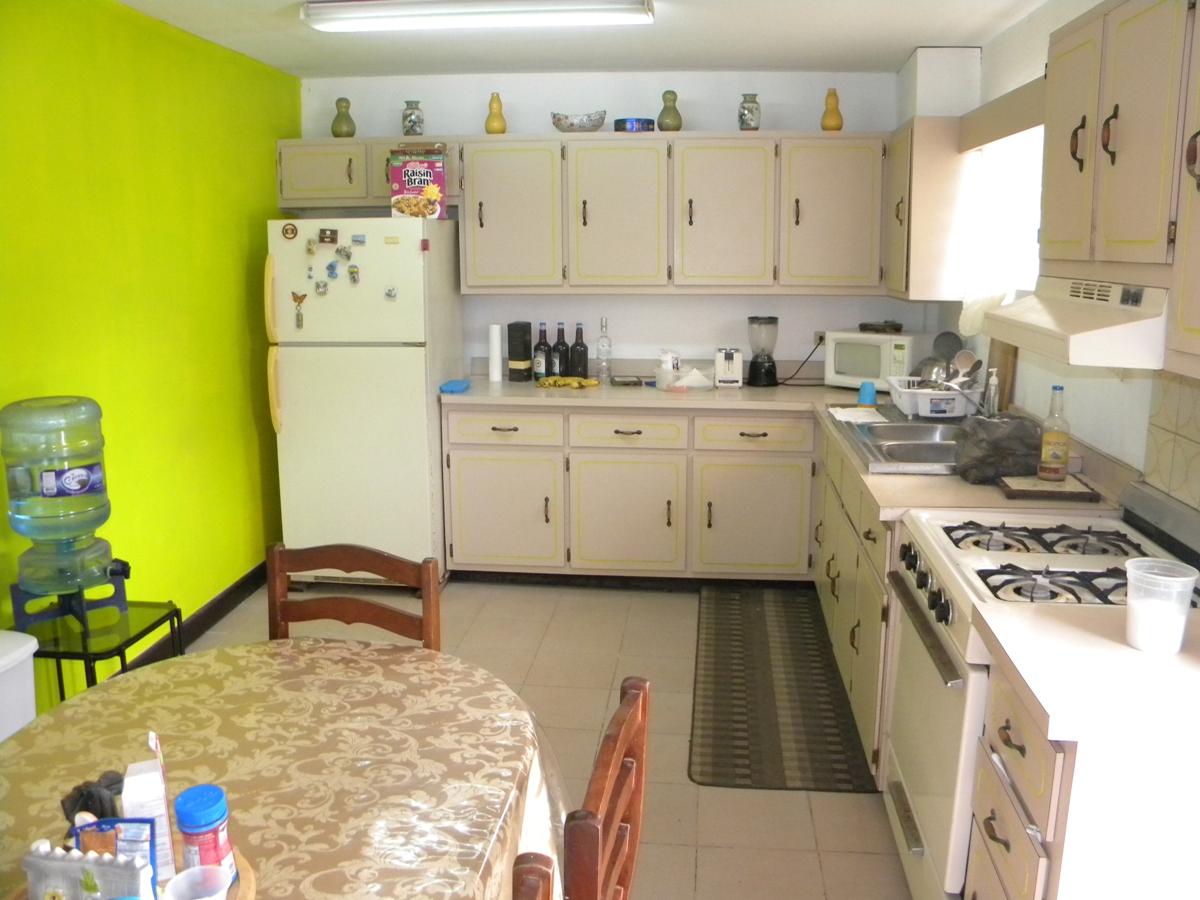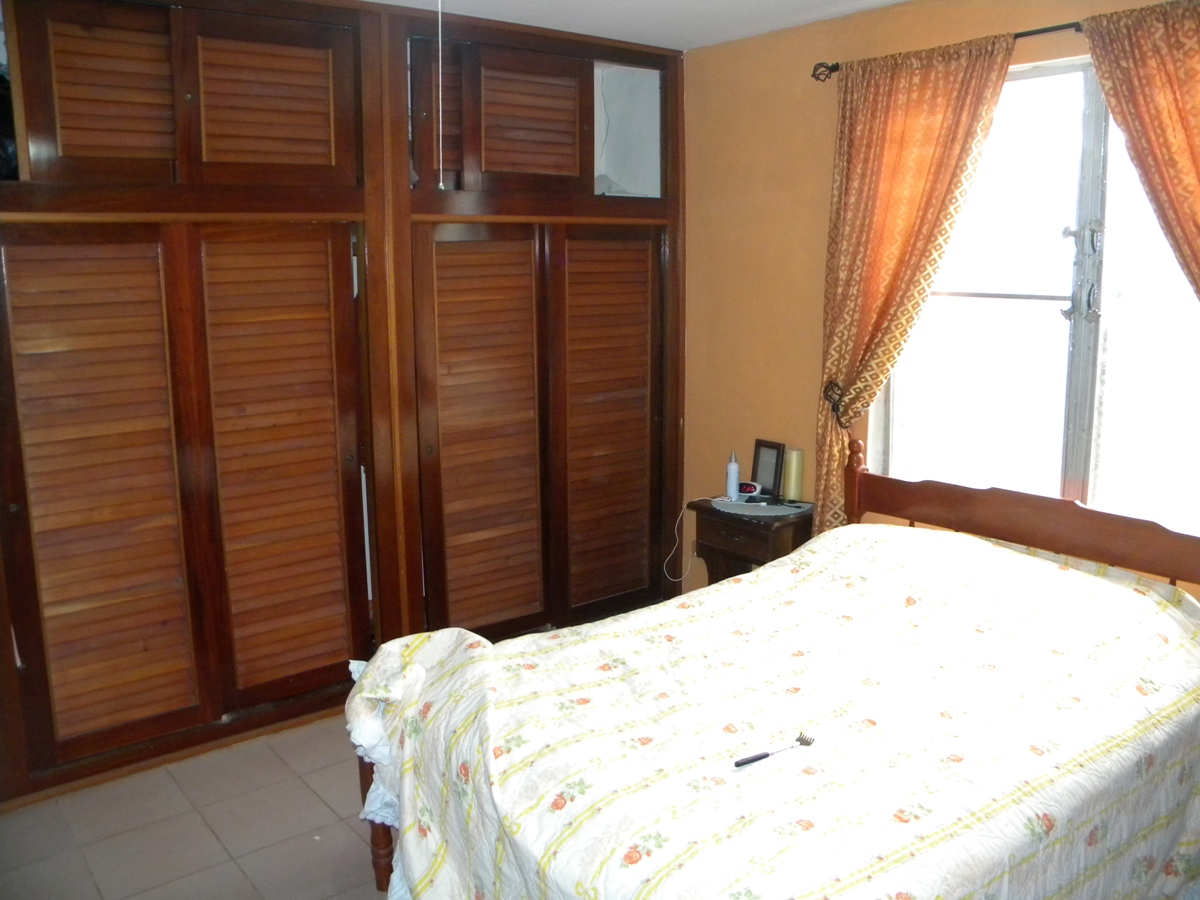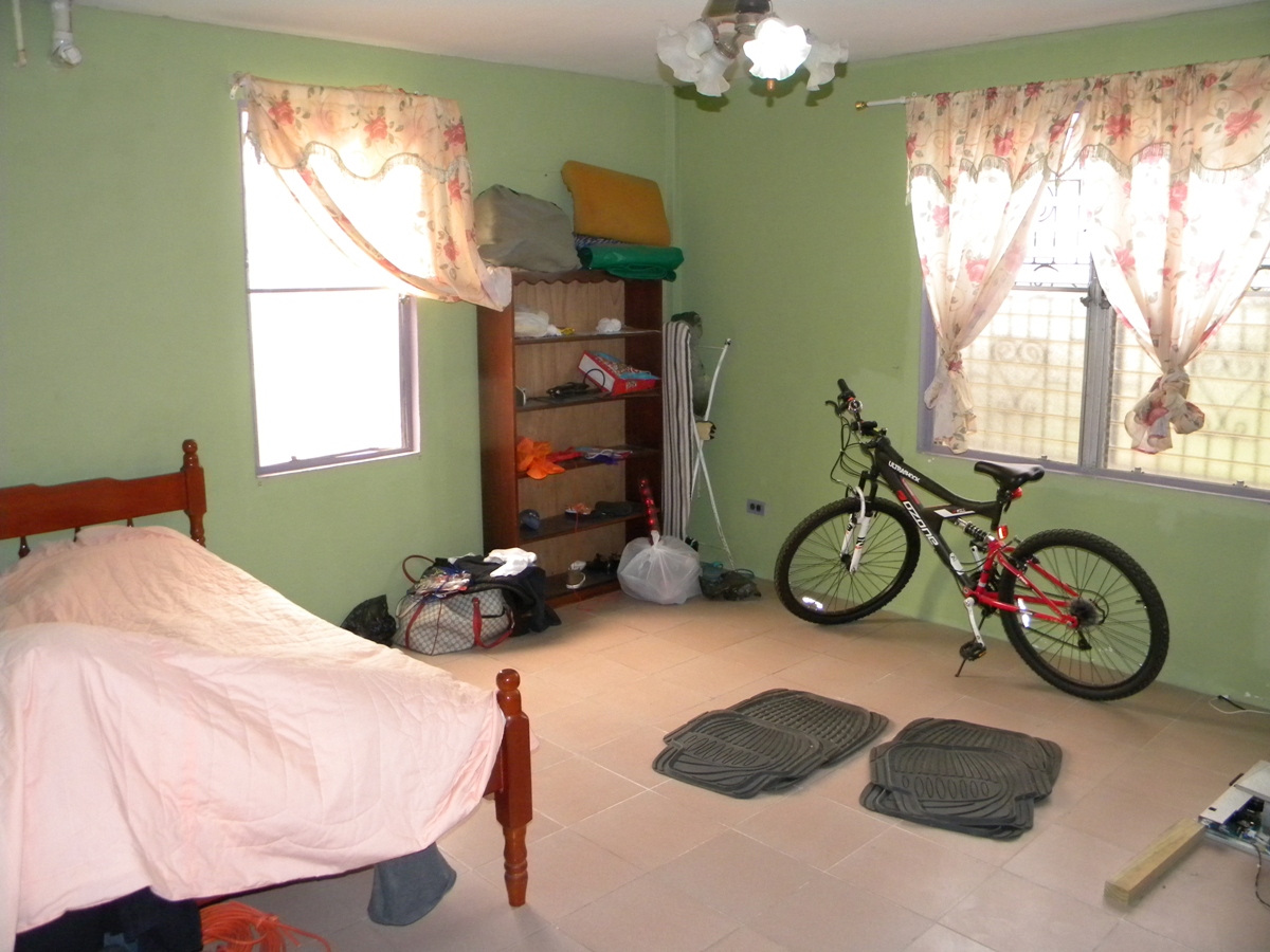 This is a furnished 2 bed/1 bath ground apartment that’s located in downtown Belize and available. This very spacious apartment has approximately 850 sq. ft. of living space. The living room is very spacious and easily fits the furniture provided, while still having lots of moving space. The kitchen has nice, Formica cabinets that wrap around. Definitely a great choice for the cooking fan! The bedrooms are very large, being able to accommodate queen sized beds. The master bedroom has built in mahogany closets and is air conditioned.
