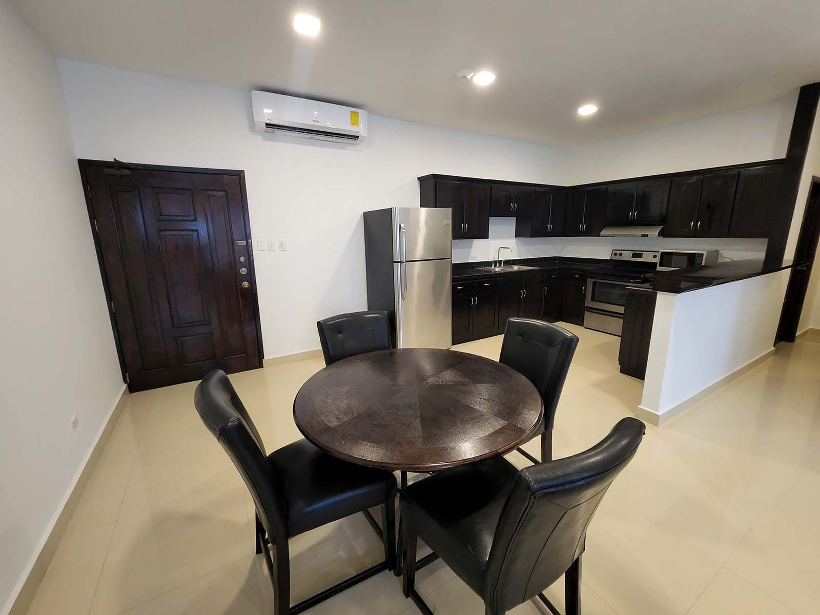This beautiful apartment is very modernized and equipped with chrome appliances and fashionable furniture. The apartment offers approximately 1,000 sq. ft. of living space making it quite a spacious apartment. The master bedroom is very large and can comfortably fit a queen sized bed. The master bedroom also has access to its own private bathroom. The apartment has access to a side balcony with stunning views of the Caribbean Sea horizon and the surrounding neighbourhood. The entire apartment has central air system.