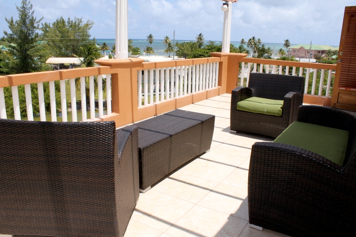 A three bedroom, three bathroom condo unit for sale situated on the 3rd/4th floor of the Ambergris Caye Villas in San Pedro. This unit can sleep up to 6 persons. It offers stunning and immaculate views of the San Pedro Beach and the surrounding town. A furnished and spacious verandah overlooks the lake.