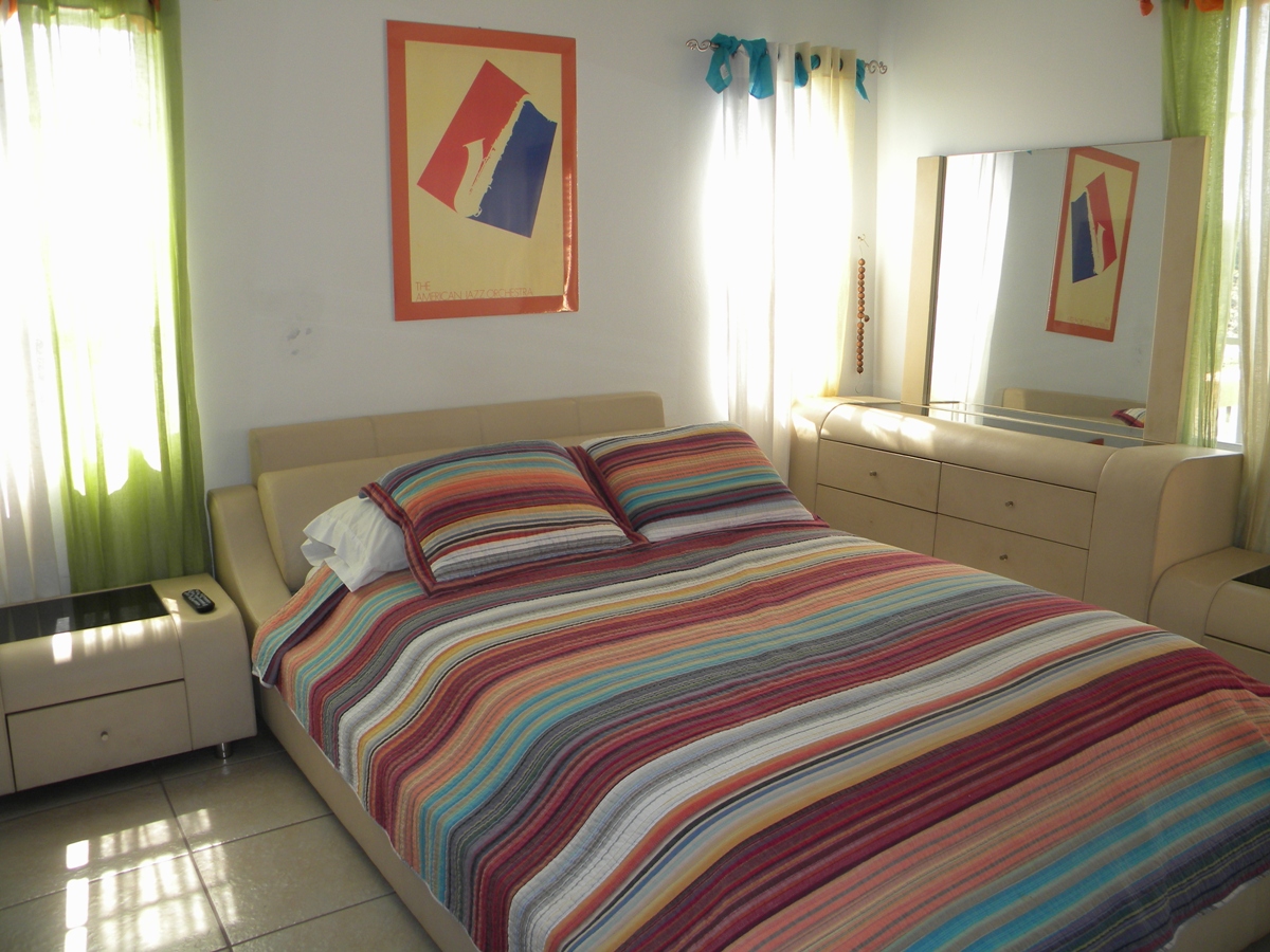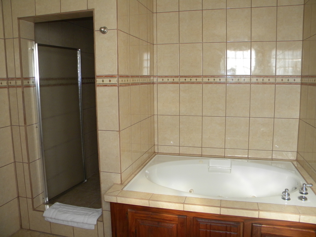 The comfortable living area has a leather suite, Widescreen TV, wireless internet access and cable TV. Fully furnished.