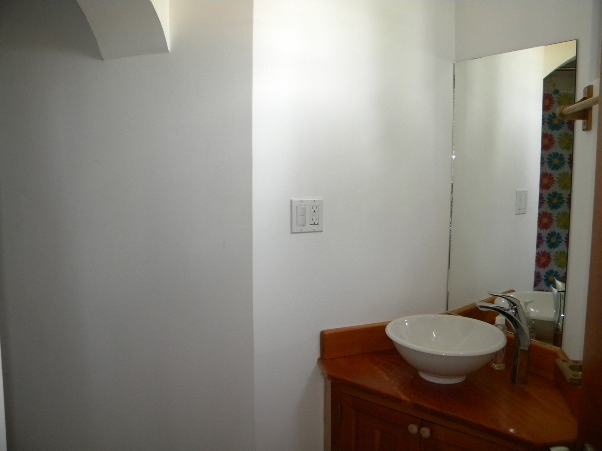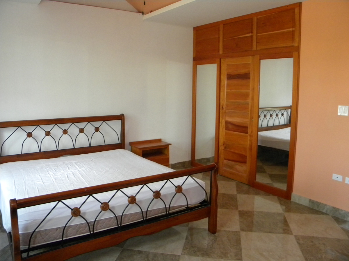 The apartment has an open dining, kitchen and living room with a hall way access to the three bedrooms and the backdoor. The kitchen comprises of beautiful local hardwood with granite countertop along with local hardwood shelf cabinets. Bedroom 1 has its closet space with a full bed and Bedroom 2 has its closet space along with a queen size bed. The Master bedroom has a queen size bed, walk in closet and access to its private full bathroom.