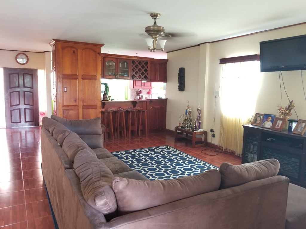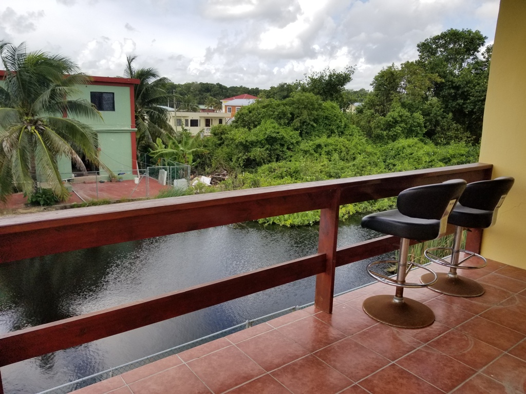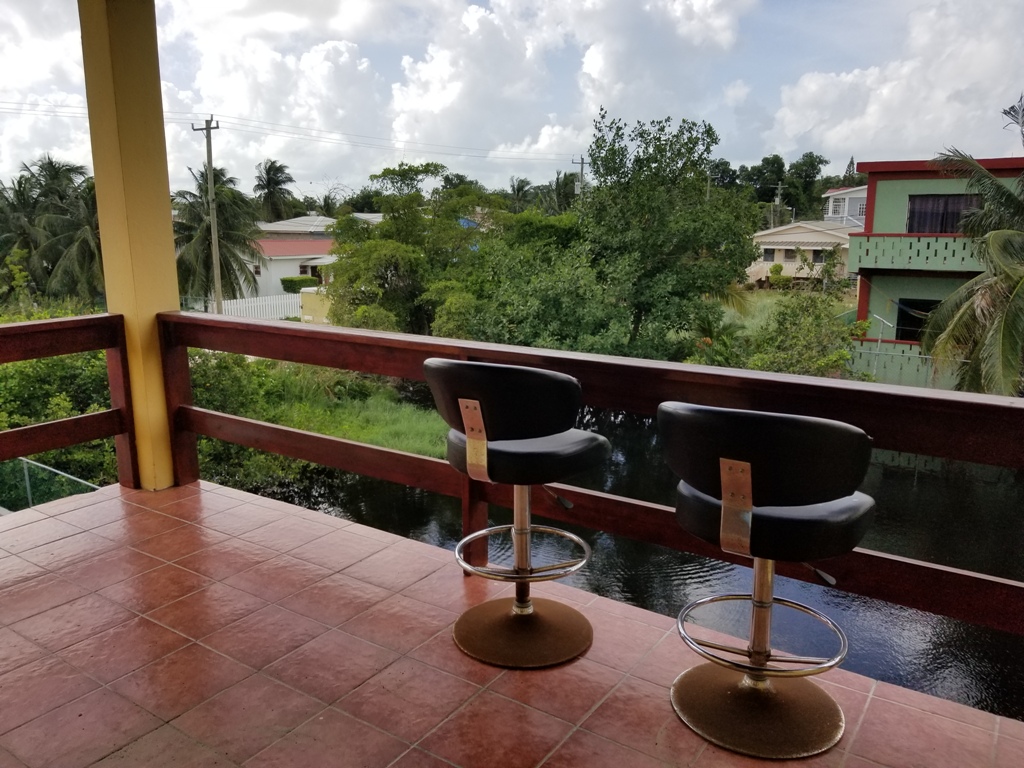 This is a beautiful fully furnished 2nd floor 3 Bed 2 Bath Apartment located in Belama Phase 2. The home is located on the main Albert Hoy Street in which the bus stops on that street. The home is in a fenced yard and edges the canal at the back.