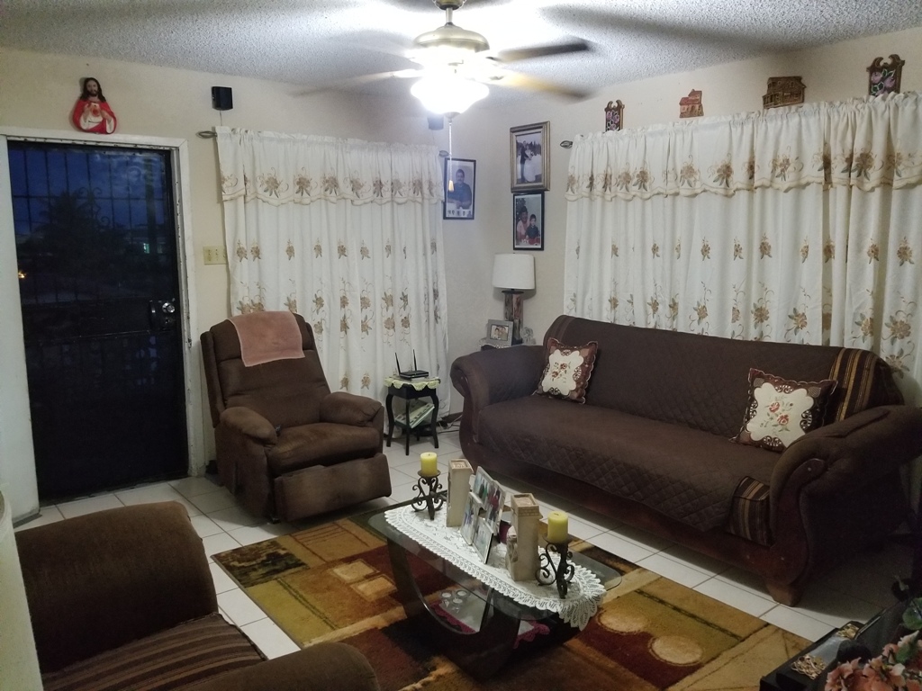 To the back of the house has a storage room along with a private utility room equipped with a washer and dryer. The back of the house also have the Master Bedroom that has its queen size bed along with a large walk in closet and its private bathroom. The 2 additional bedrooms are equipped with double beds. The yard also has a cherry and plum tree.