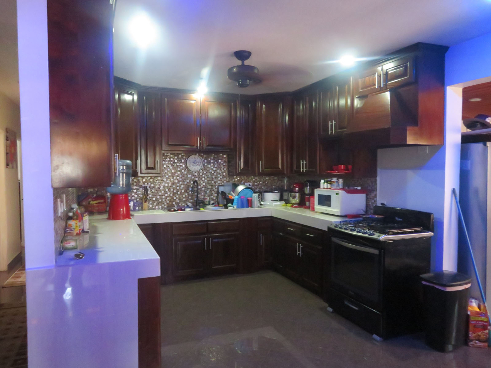This home is beautifully designed and is renting fully furnished with all furnitures and appliances necessary. Consisting of four large bedrooms, kitchen, living area, and dining room, this house comfortably fits a large family. The kitchen consists of wrap-around wooden kitchen cabinets, plenty of storage space for kitchenware, large tiled kitchen counter and a pantry area.