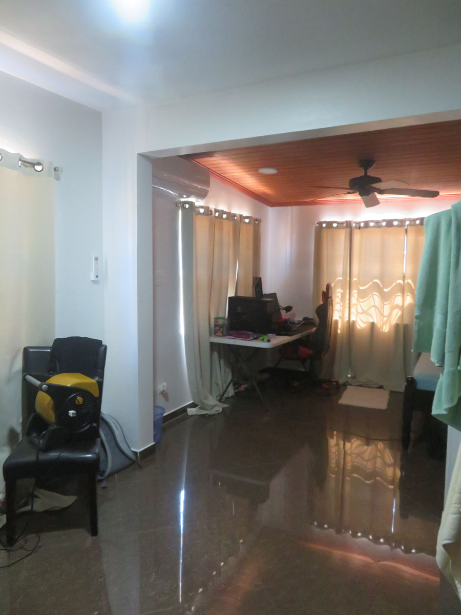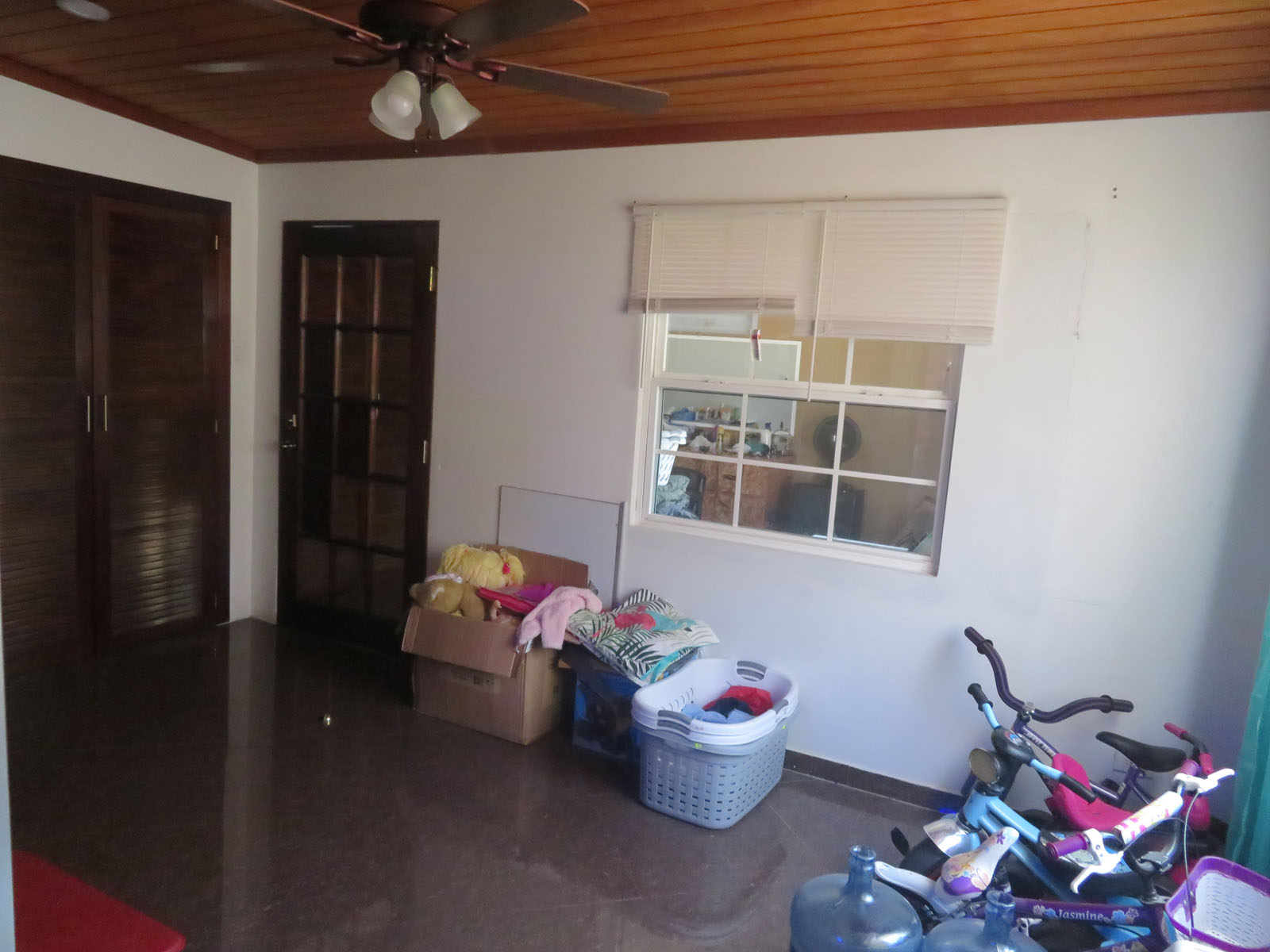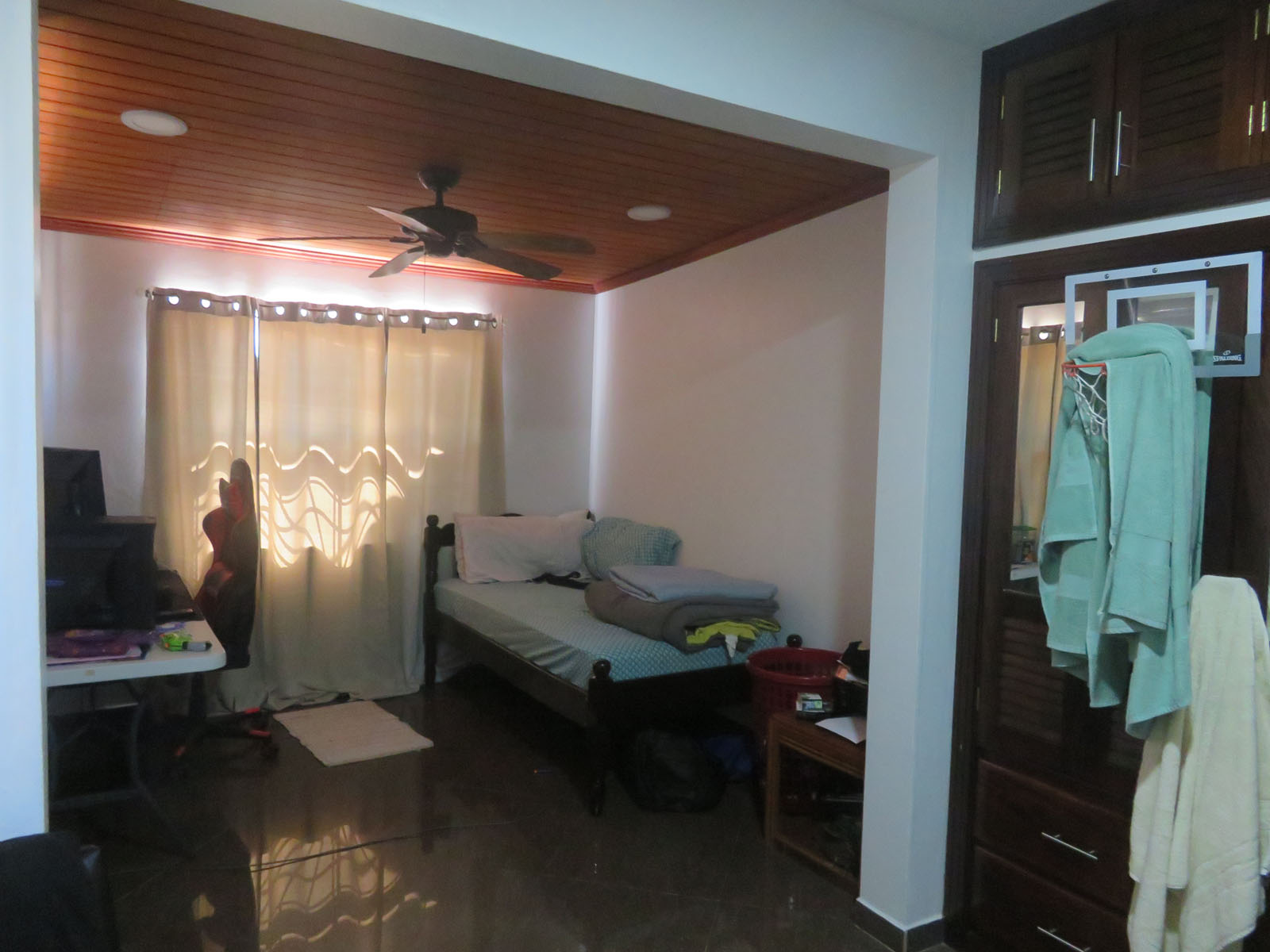 The bedrooms are very spacious and all have closets as well as additional storage space with enough room remaining to walk around comfortably . The house has two baths, one is located in the master bedroom and the other is the common shared bath. The entire house is well ventilated with ceiling fans in almost all the rooms. Air conditioning units are also found in all the rooms which makes the house fully air conditioned. A designated laundry area is adjacent to the kitchen area and fits a large washer and dryer.