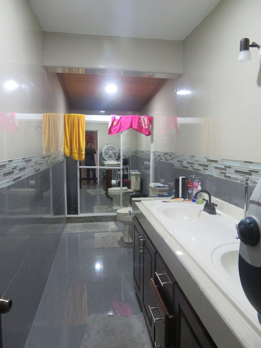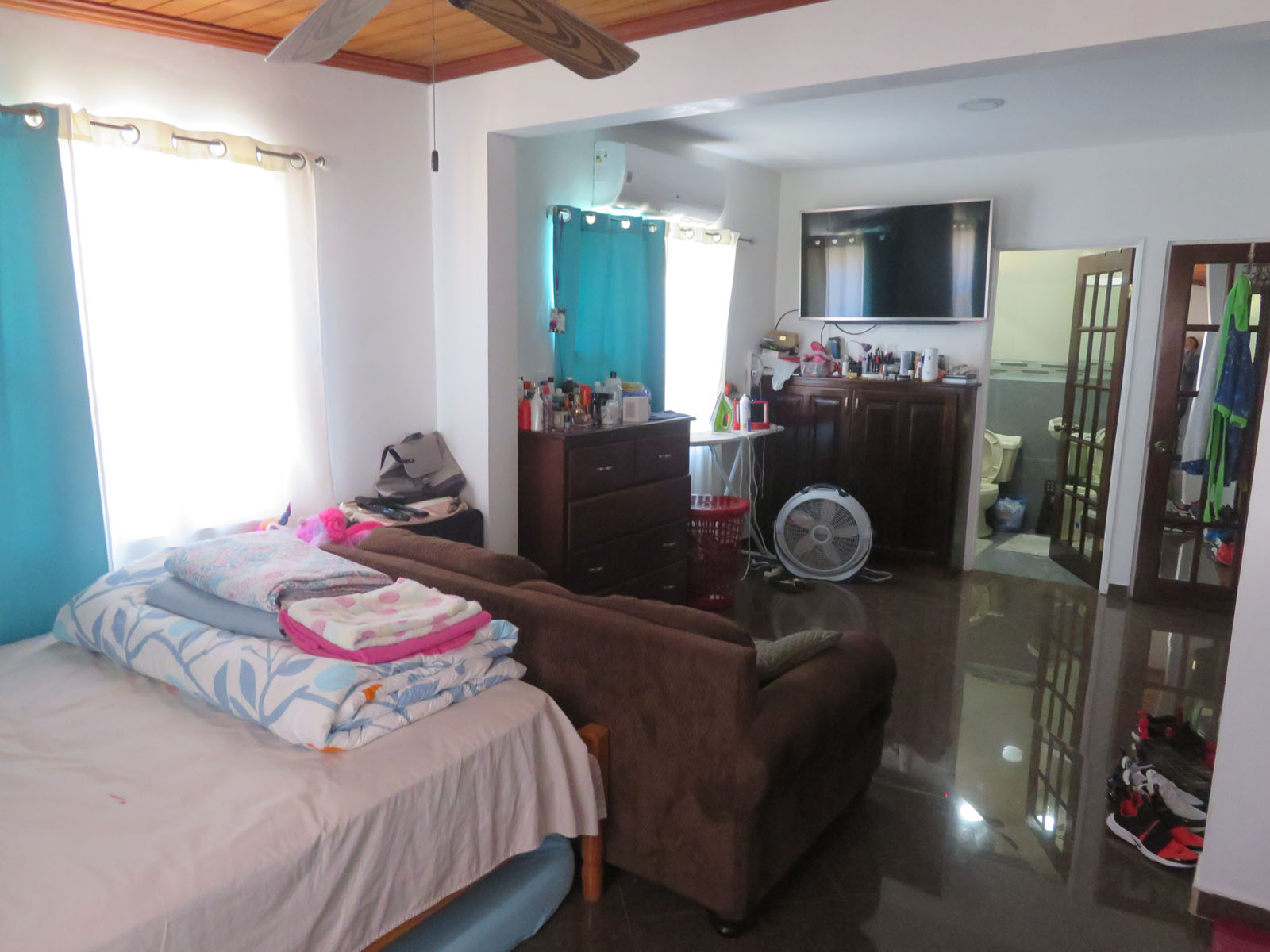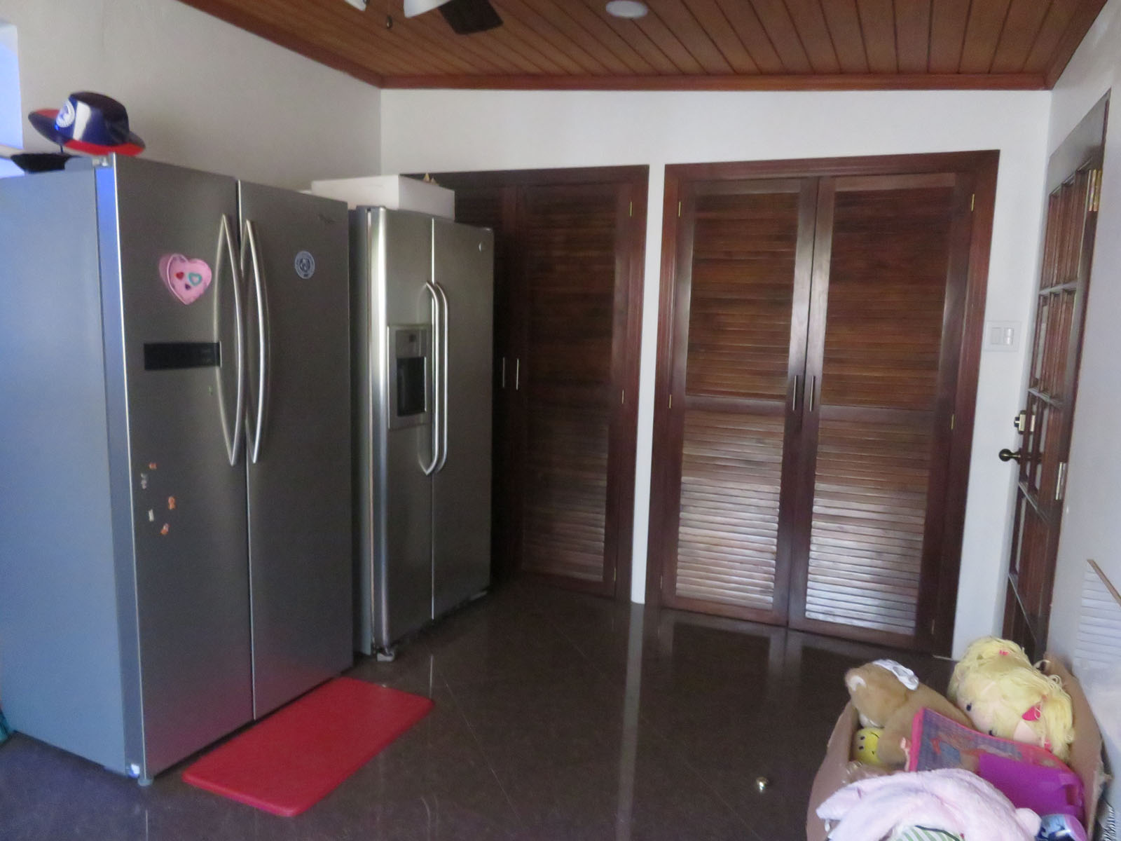 The bedrooms are very spacious and all have closets as well as additional storage space with enough room remaining to walk around comfortably . The house has two baths, one is located in the master bedroom and the other is the common shared bath. The entire house is well ventilated with ceiling fans in almost all the rooms. Air conditioning units are also found in all the rooms which makes the house fully air conditioned. A designated laundry area is adjacent to the kitchen area and fits a large washer and dryer.